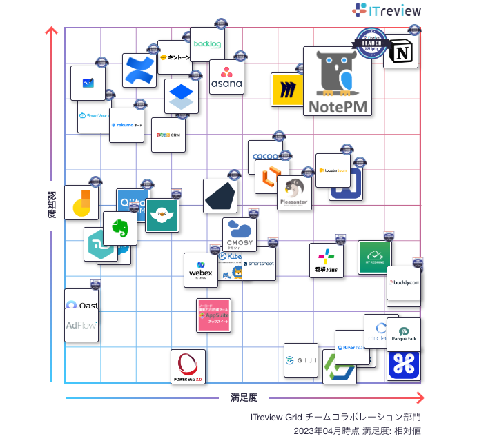 ナレッジ管理SaaS「NotePM」が「ITreview Grid Award 2023 Summer」で、チームコラボレーションとマニュアル作成部門において「Leader」を12期連続受賞!