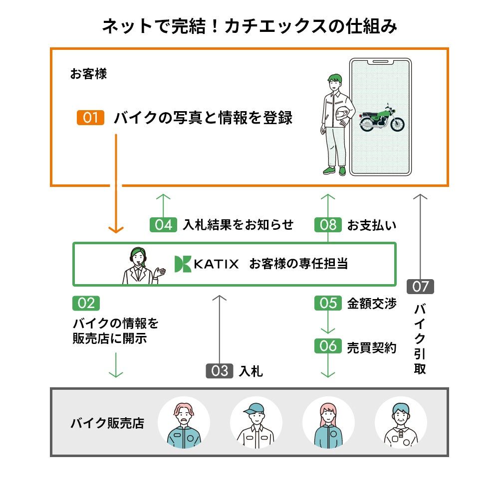 カチエックスは株式会社インターファームが運営する、ネット完結型のバイク売買サービスです。