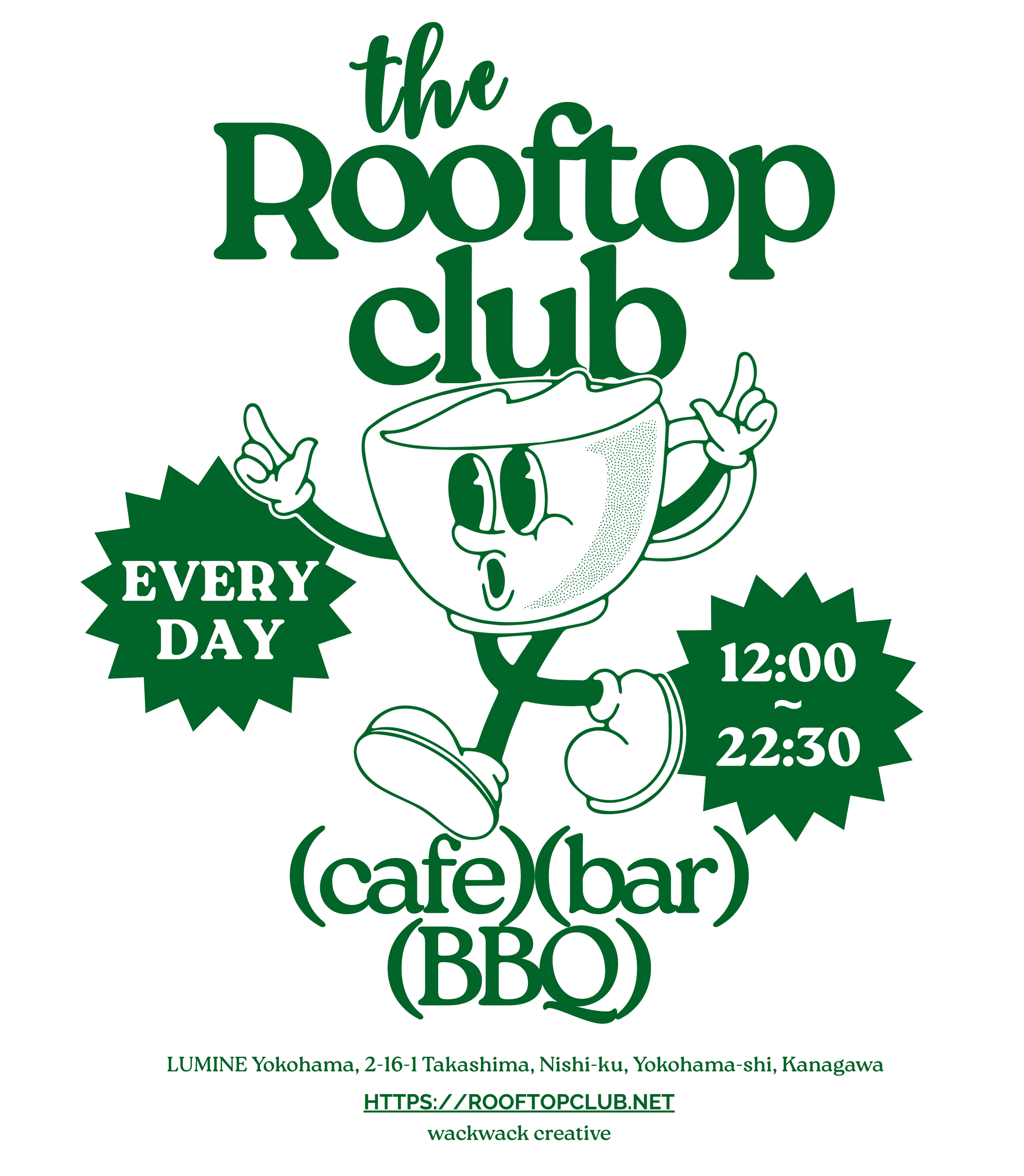 「不純喫茶ドープ」などを手掛けるwackwack creative株式会社(所在地:東京都世田谷区、代表取締役社長:井川 裕介)は、ルーフトップカフェ、バー&バーベキュー「the Rooftop club」を2025年5月1日(木)にルミネ横浜の屋上にオープン致します。公式サイト(https://rooftopclub.net/)にて予約受付開始しました。