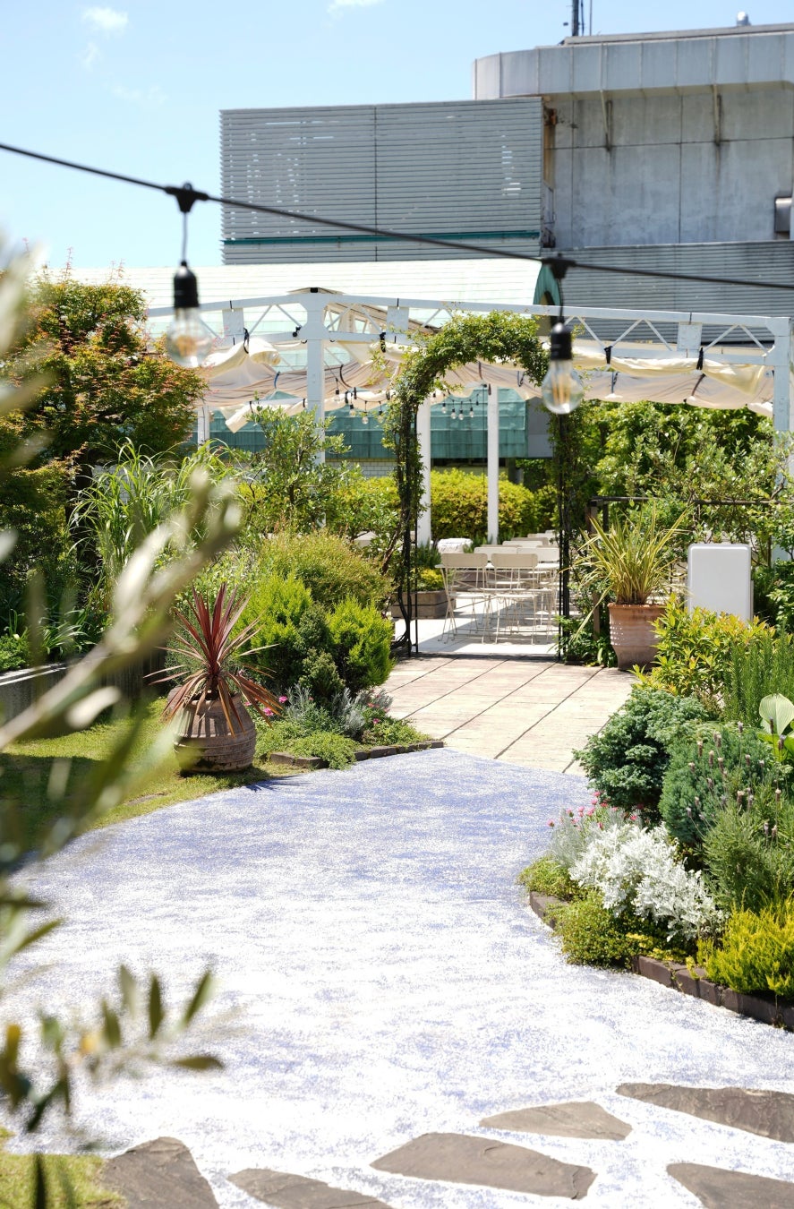 ルミネ横浜屋上に誕生する「the Rooftop club」は、都会の喧騒を忘れさせる緑豊かな空間。