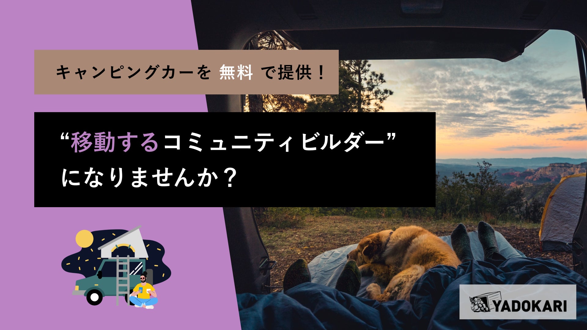 【募集】キャンピングカーを無料で提供!「移動する暮らし」を実践しながら、YADOKARIと共に暮らしの魅力を発信していくコミュニティビルダーを募集します