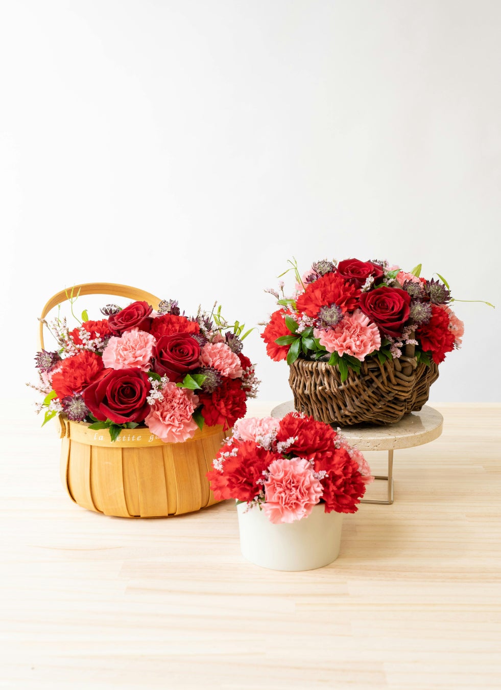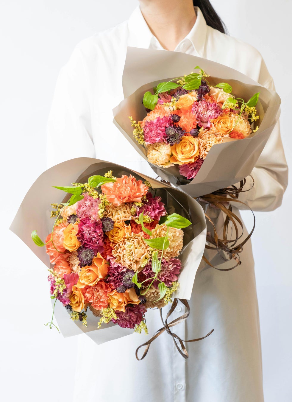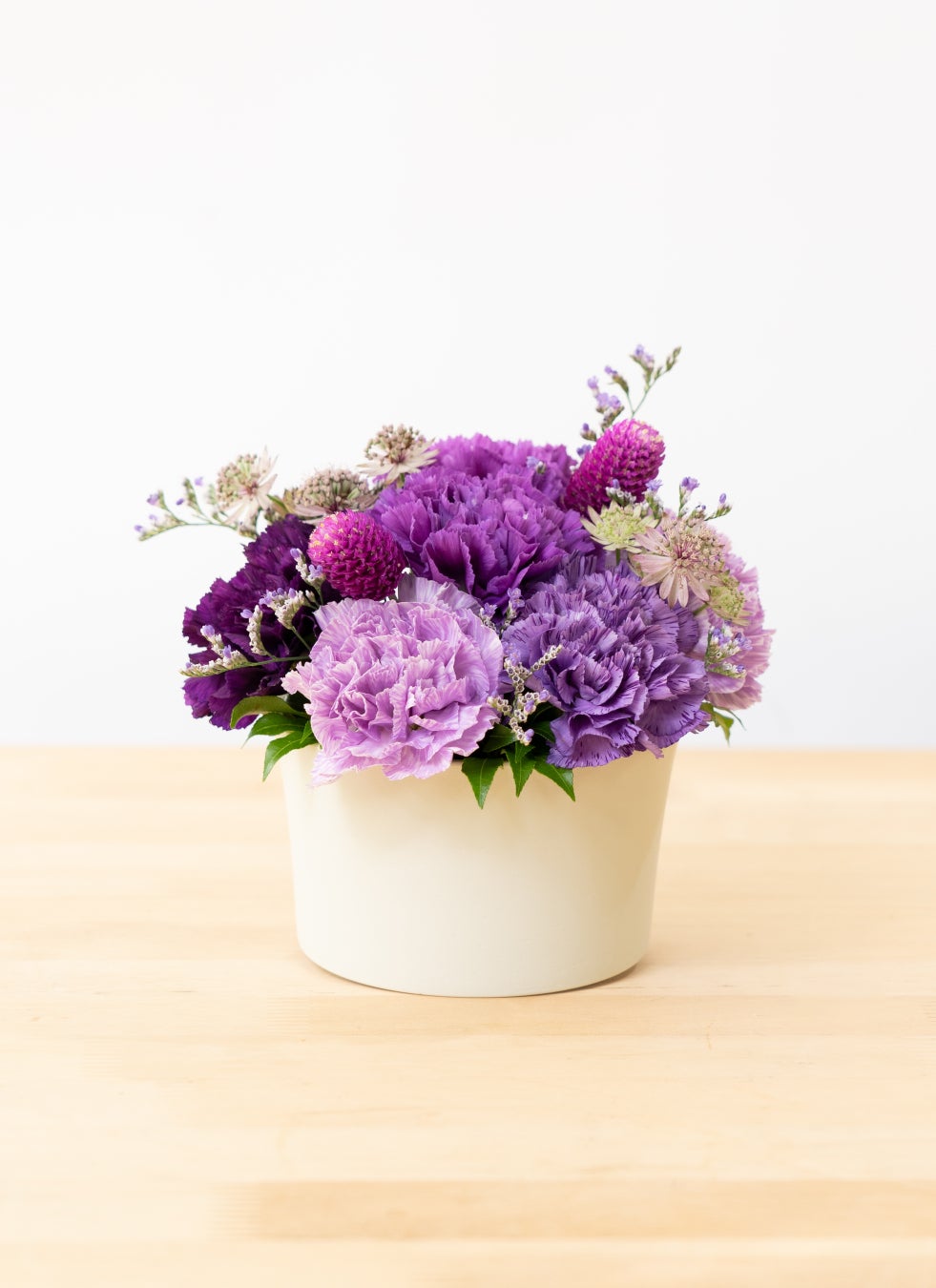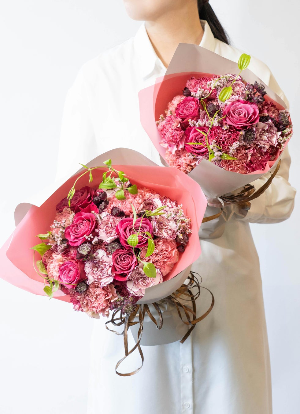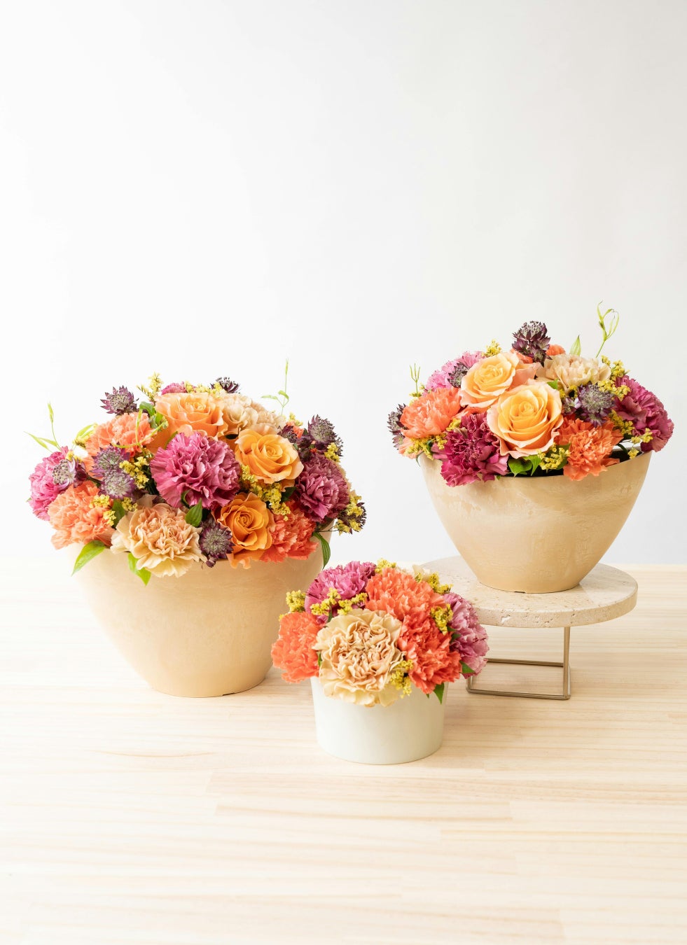 花束タイプや、複数スタイルの置き型アレンジメントタイプをご用意しており、贈るお相手のライフスタイルに合わせてぴったりのお品をお選びいただけます。