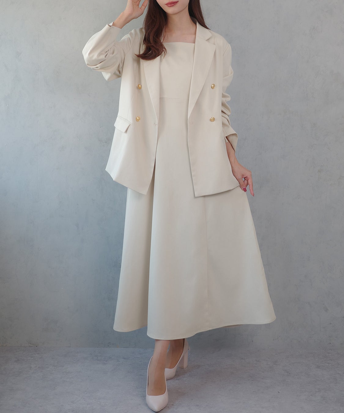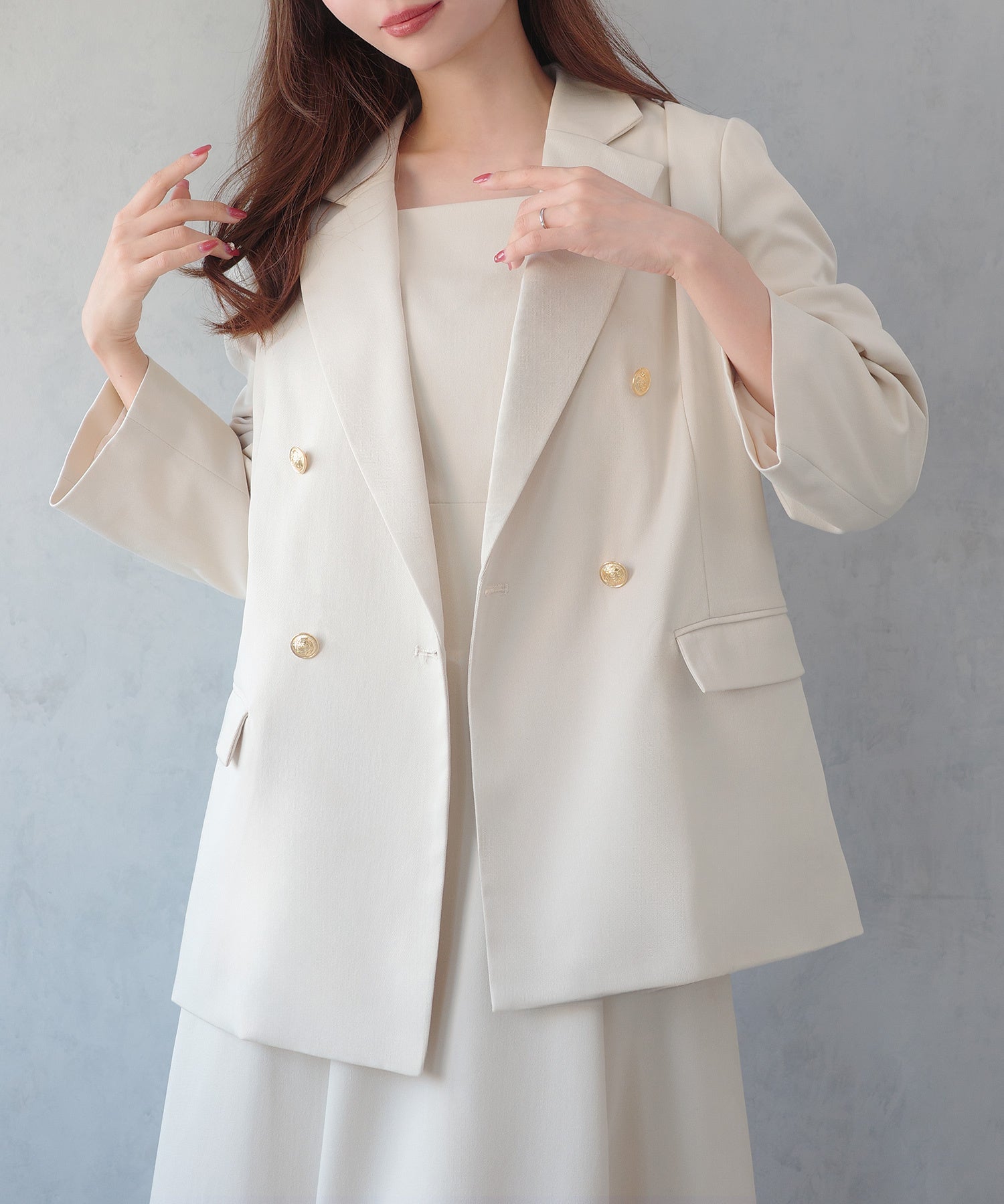【金ボタンテーラードジャケット+キャミワンピース】