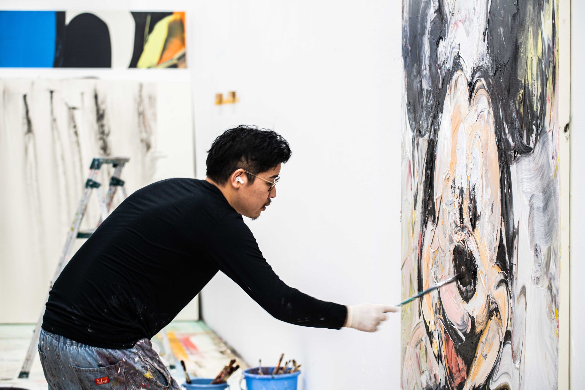 これを叶えるクオリティの仕事を、私はしなければならない。それが芸術家の使命だと考え、私は作品を制作しています。私が理想とする「時を超えて受け継がれていく表現」を、ディズニーは達成しています。ウォルト・ディズニー・カンパニーが誕生して100年。ディズニーが生み出したキャラクターや物語は、国・世代を超えて人々に受け継がれ、愛されてきました。本企画では、ディズニーの功績、歴史を実感しながら自らの表現をするという意味で、一表現者として考えさせられる数年間を過ごしました。今回、私が描いたのは、ディズニーが生み出したキャラクターたちです。「描く」ということは、モチーフとなるキャラクターを十分に解釈し、私の身体を通して表現することになります。