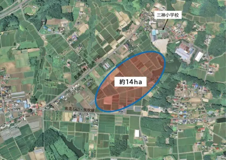 矢吹町からは2023年11月に「白山・神田地区土地利用可能性調査業務」を受託しました。具体的には、白山・神田地区にある14haの農地(地権者約50人)に関して、慢性的な水不足から新たな農地利用方法を調査するともに、当社の農業法人網を活用した農家・農業法人の誘致が期待されました。