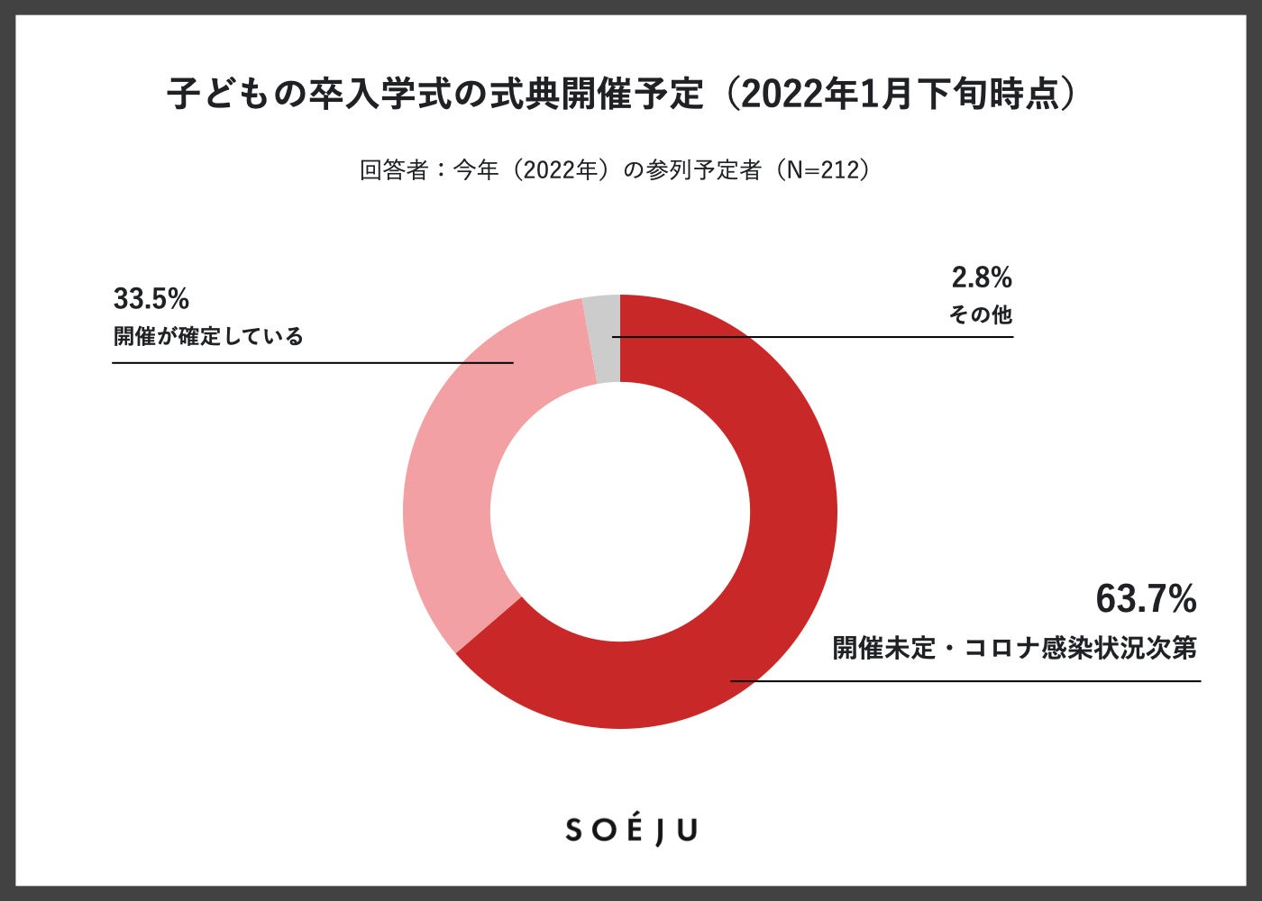 アンケート実施時期は2022年1月下旬、新型コロナウイルスの第6波の感染拡大状況下においての調査のためか、式典の開催について「未定(コロナ感染状況次第)」との回答が大半を占め約6割に。
