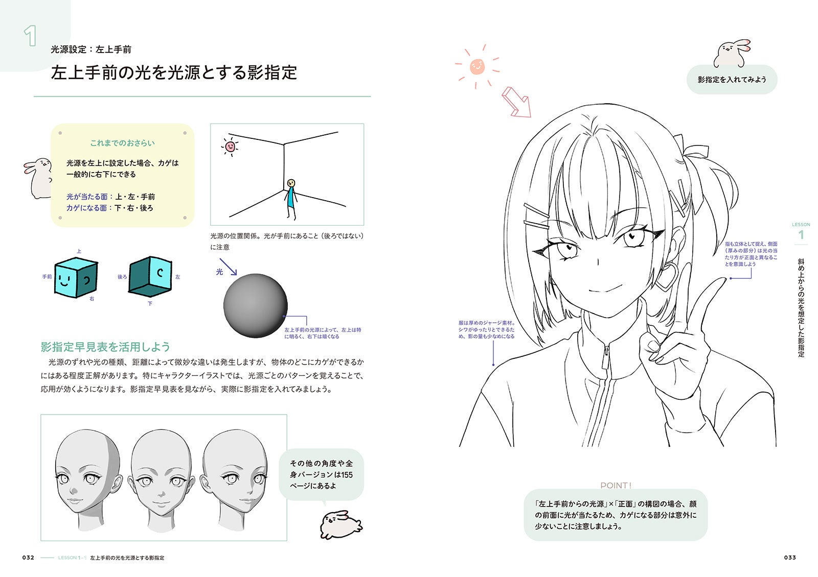 イラストでよく使われる「斜め前」「前方上」「背後」の3種類の光源に絞って、カゲの描き方の「OK例」と「NG例」を丁寧に解説。すぐに実践に活かせる内容なので、初心者から中級者まで幅広く役立ちます。