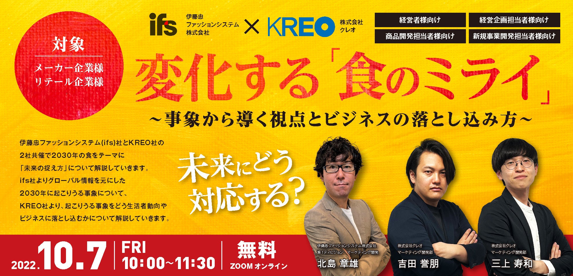 食ビジネスに携わり、企業の方向性や事業のあり方を中長期視点で考えている方を対象に、伊藤忠ファッションシステム社