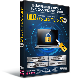 「LB パソコンロック5 Pro」は、PCの利用制限を行うソフトとして企業や官公庁等に数多く導入されてきている「LBパソコンロック シリーズ」の最新版となります。「LB パソコンロック5 Pro」は、市販のUSBデバイス等をPCの鍵に設定することにより、鍵の抜き差しだけで、Windowsへの自動ログオンやPCの操作制限が簡単に行えるだけでなく、PCを一定時間、放置した場合の自動ロック機能やロック時の不正操作を通知するアラート機能等、PCの利用を管理するための機能が搭載されています。