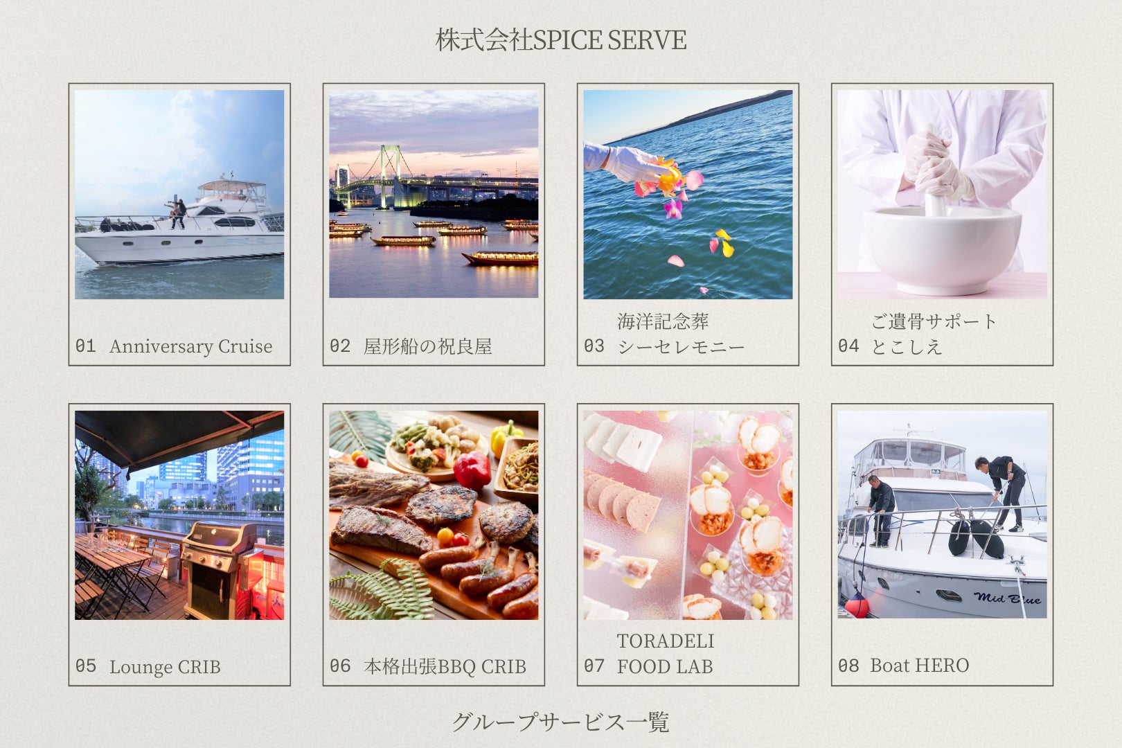 ”船からはじまるリゾート⾰命”をビジョンに掲げ、お客様の特別な記念⽇を彩る貸切クルージングサービス「Anniversary Cruise®」を中⼼に、海洋散⾻「海洋記念葬®シーセレモニー」、貸切BBQ&イベントスペース「Lounge CRIB」や「本格出張BBQ CRIB」の運営、ケータリング「TORADELI®FOOD LAB」、イベント企画運営など、幅広い事業を展開。