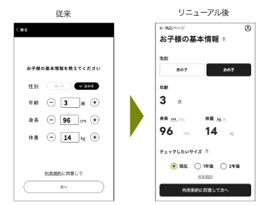 ・性別と年齢を入力すると、自動で平均身長と体重が表示されることでユーザーの、入力負荷を軽減