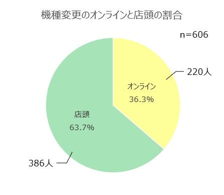 最も直近で機種変更を行ったのは、オンライン・店頭のどちらかなのか尋ねたところ以下のような結果となりました。