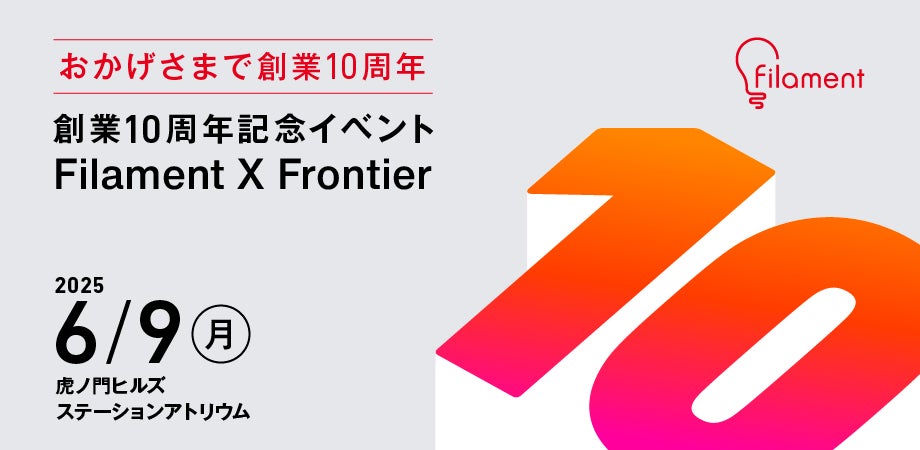 株式会社フィラメント(本社:大阪市中央区、代表:角 勝 以下、フィラメント)は、2025年4月9日に創業10周年を迎えるにあたり、ビジネスカンファレンス「Filament X Frontier」を開催することを発表しました。