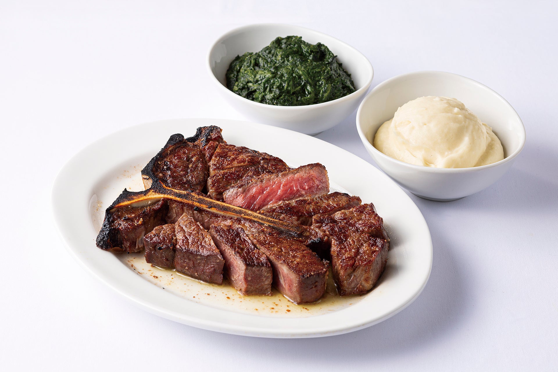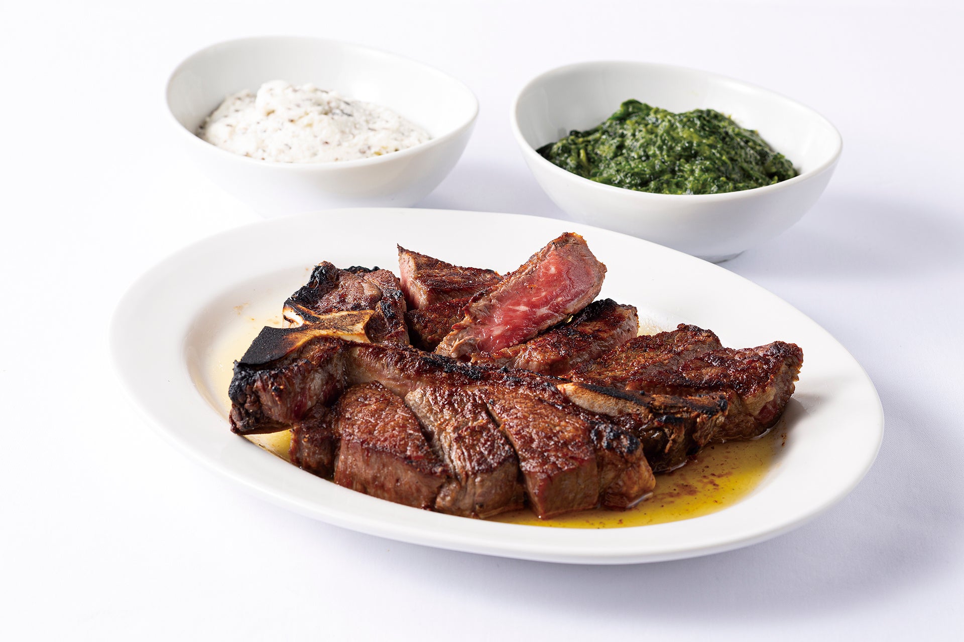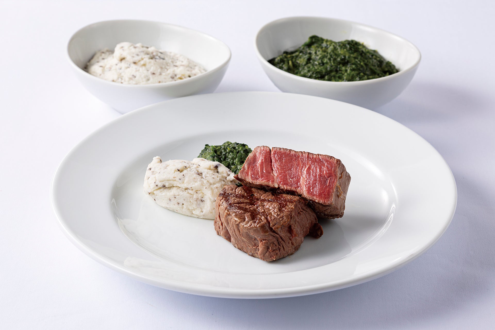USDA プライム フィレミニョン(160g)withクリームレス・クリームスピナッチ(左)