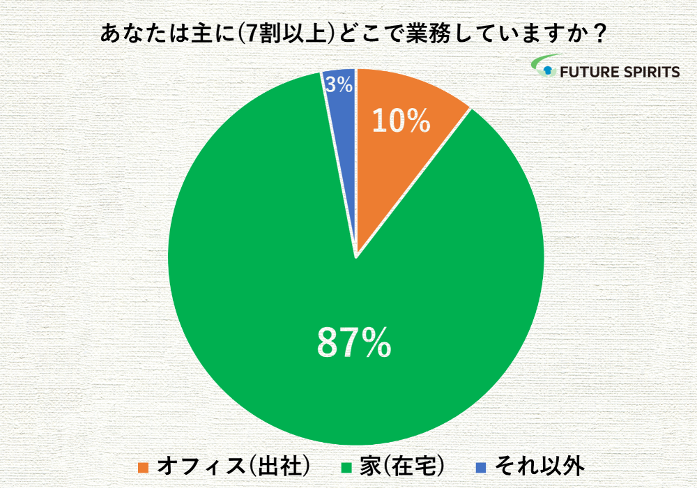 - 現在も約87%が在宅勤務を継続している