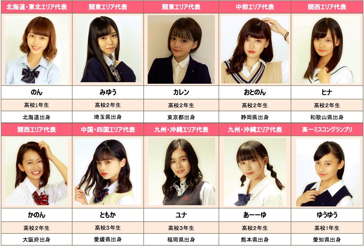 これに7月27日に開催された「高一ミスコン2019」グランプリの1名を加えた10名が現時点での暫定ファイナリストに決定。さらに現在ライブ配信アプリ「LINELIVE」にて10月22日迄開催中の敗者復活戦を勝ち抜いた2名を加えた計12名が、今年度のファイナリストとしてファイナル審査に挑みます。