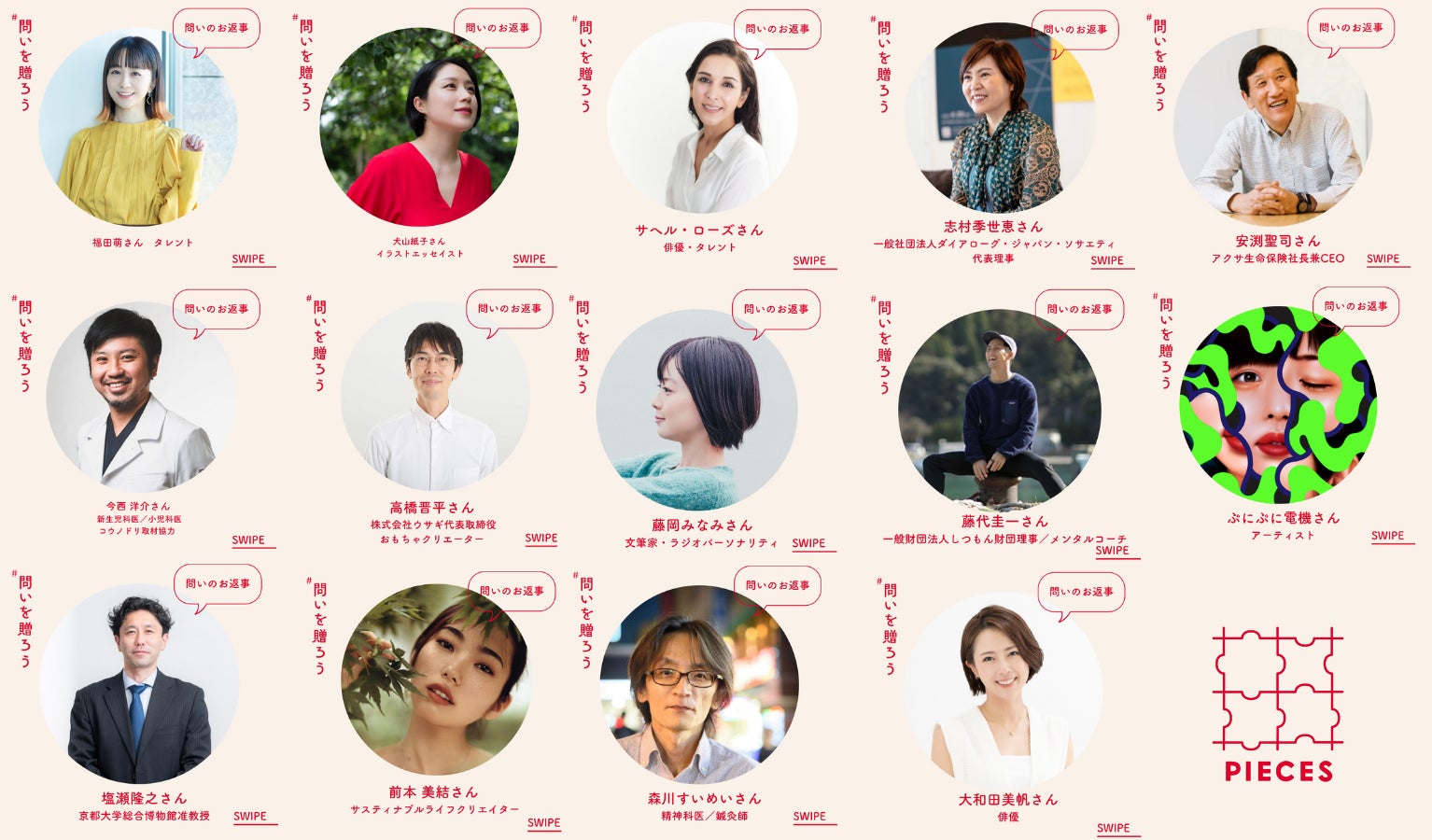 さまざまな分野で活躍する【14名】の方々から、問いのお返事をいただきました。お返事は、キャンペーンサイト(https://toi-pieces.tokyo/)からご覧いただけます。