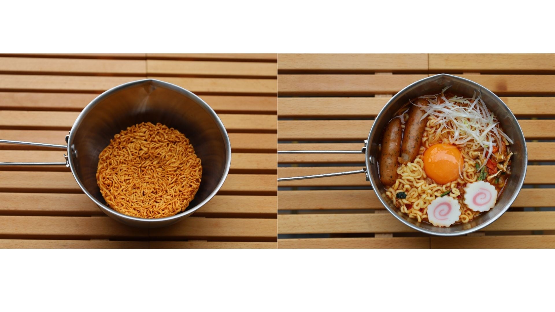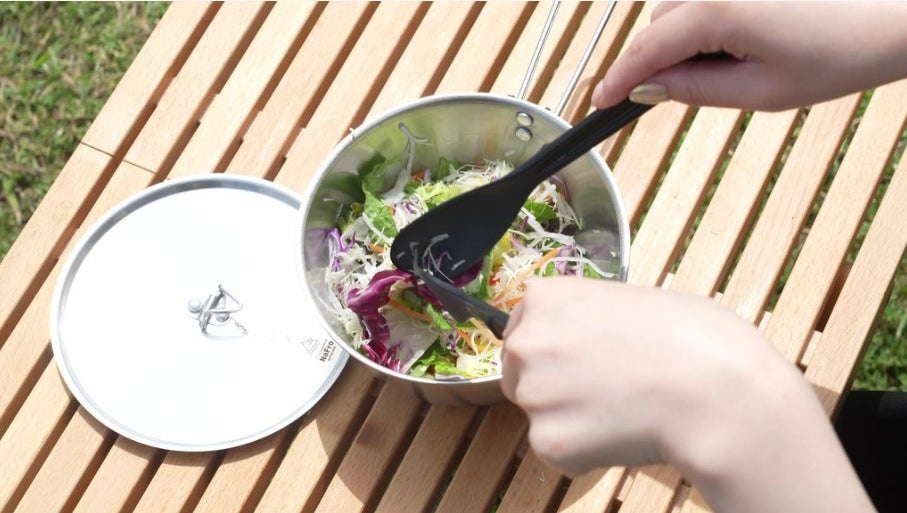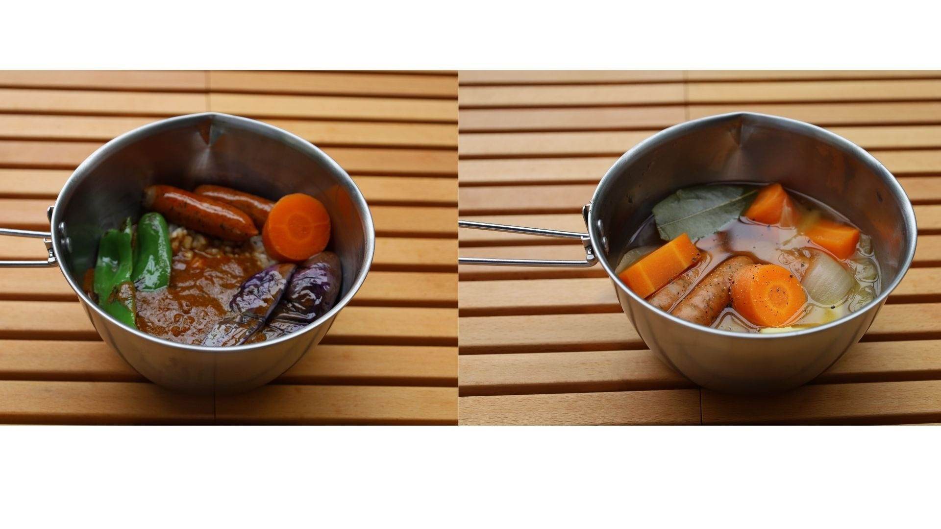 究極のシェラボウルは、これ一つで、「混ぜる・煮る・炒める・炊く・食べる」ができるキャンプ料理のお助けアイテムです。