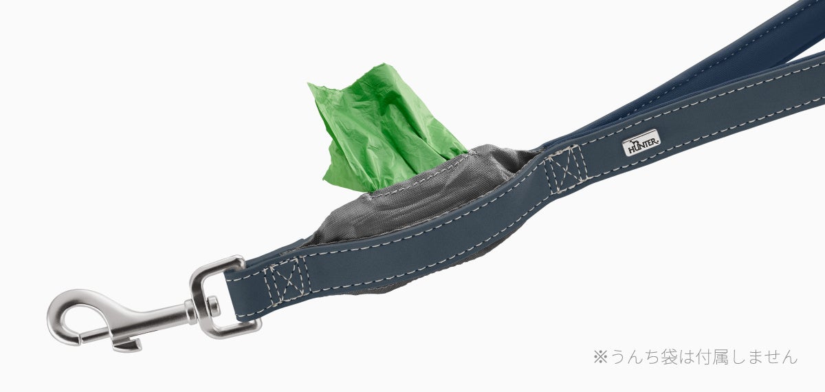 手持ち部分にはうんち袋ディスペンサー付き。散歩グッズ持ち歩きの手間を軽減。