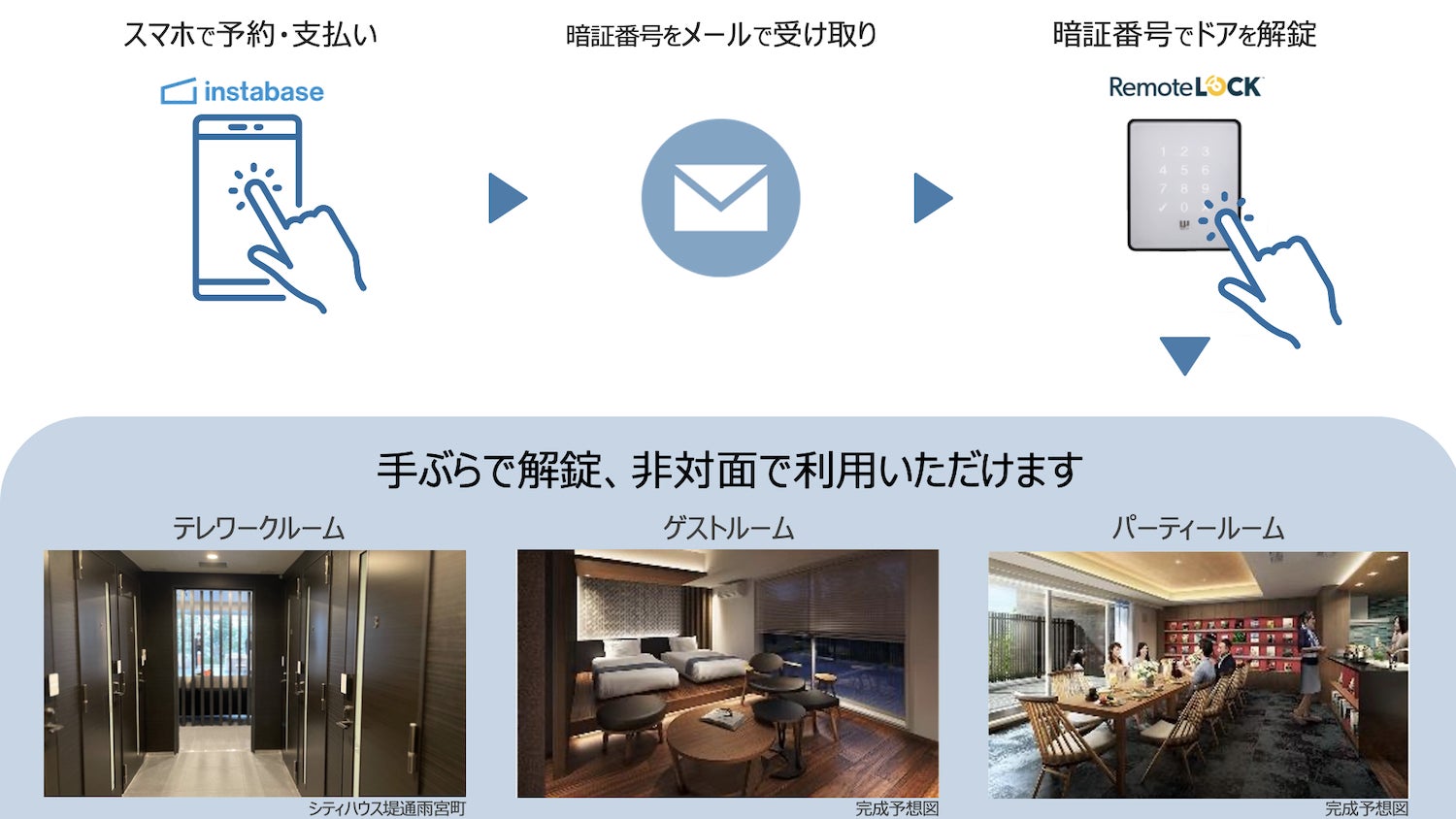 本連携は、インスタベースの「コミュニティ機能」(※)を活用し、RemoteLOCKと連携することで、住友不動産株式会社が開発する新築分譲マンション付帯の共用施設が、入居者限定のレンタルスペースとして予約、利用、決済を可能にするものです。
