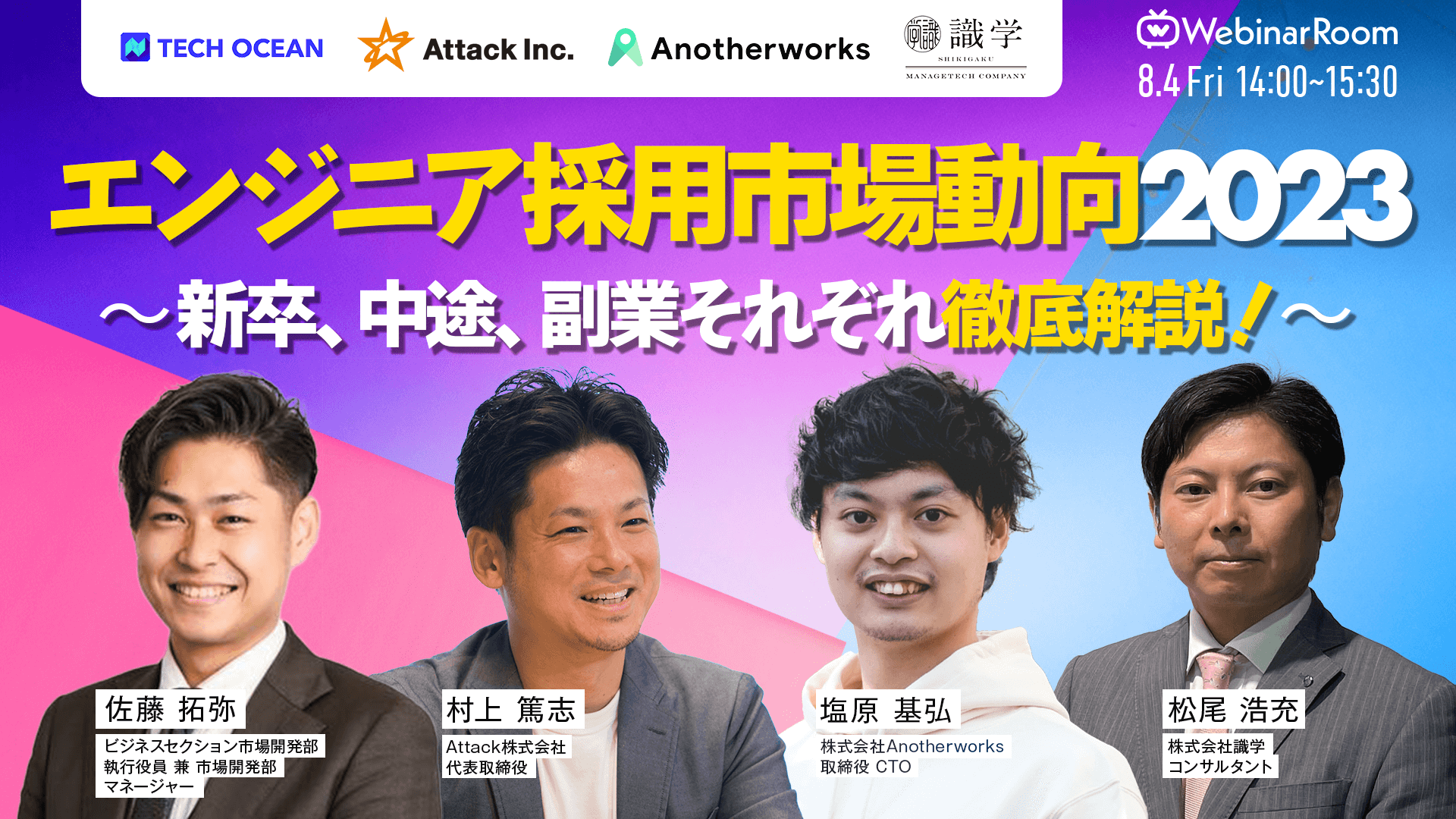 【受講無料】8/4(金)開催 WebinarRoom主催セミナー「エンジニア採用市場動向2023 〜新卒、中途、副業それぞれ徹底解説!〜」に登壇