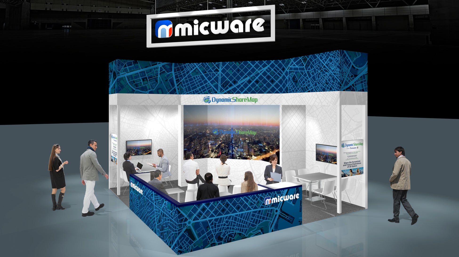 今回の展示でミックウェアは、次世代のロケーションベースドサービス(LBS)の核となるべく開発された、直感的で表現力豊かな3D空間プラットフォームをお見せします。デジタルとフィジカルが融合する未来を、ぜひいち早くご体感ください。