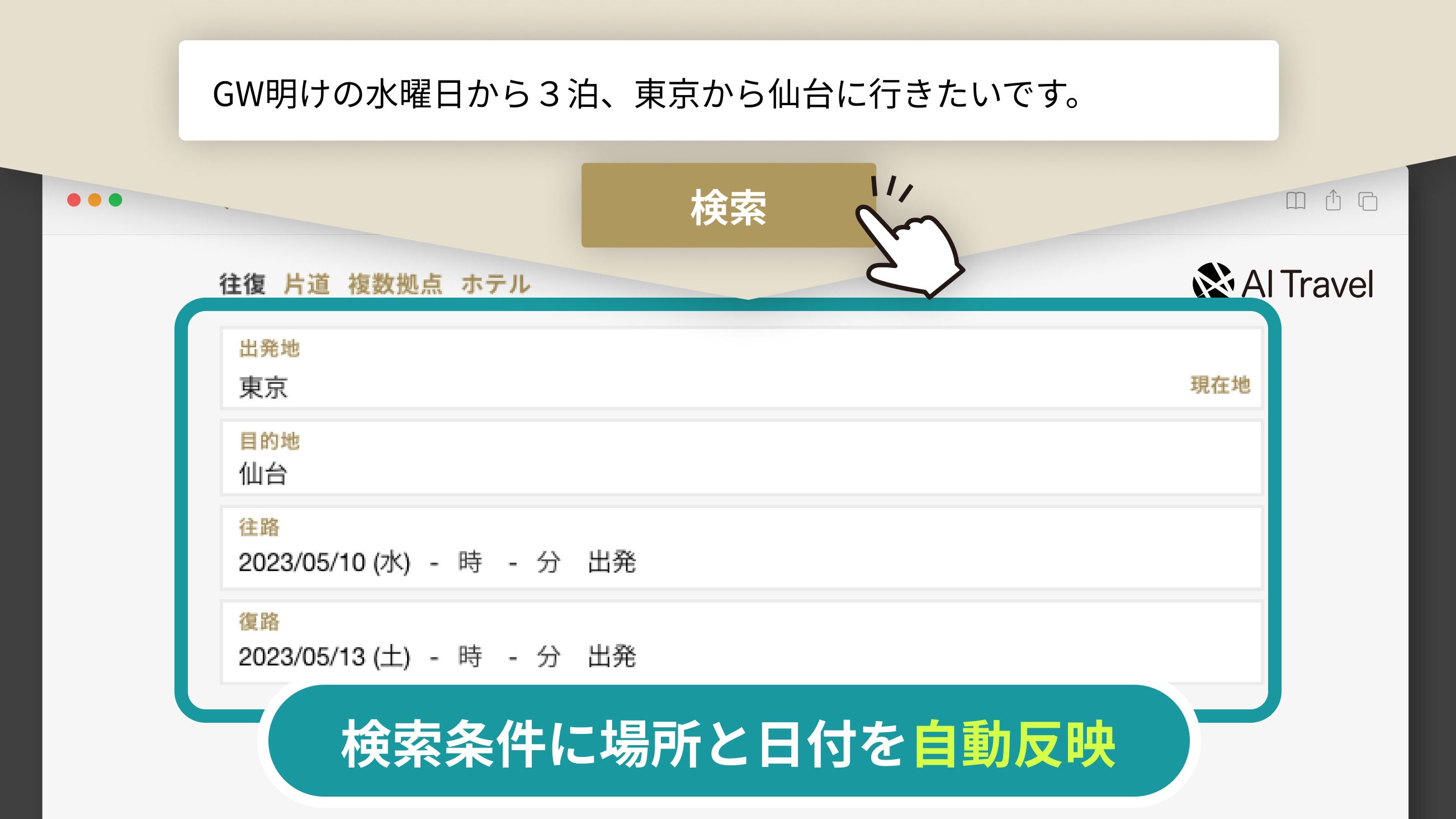 第1弾として、ホテル・飛行機・新幹線の検索機能の補助、AI Travelサービス内でのユーザーとのやりとりの自動化、利用者の質問・要求に対しての提案自動化などを実装いたします。