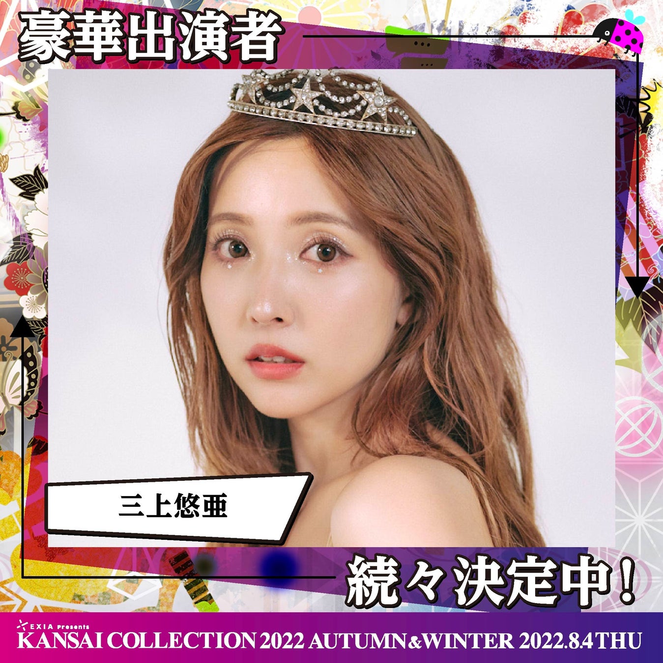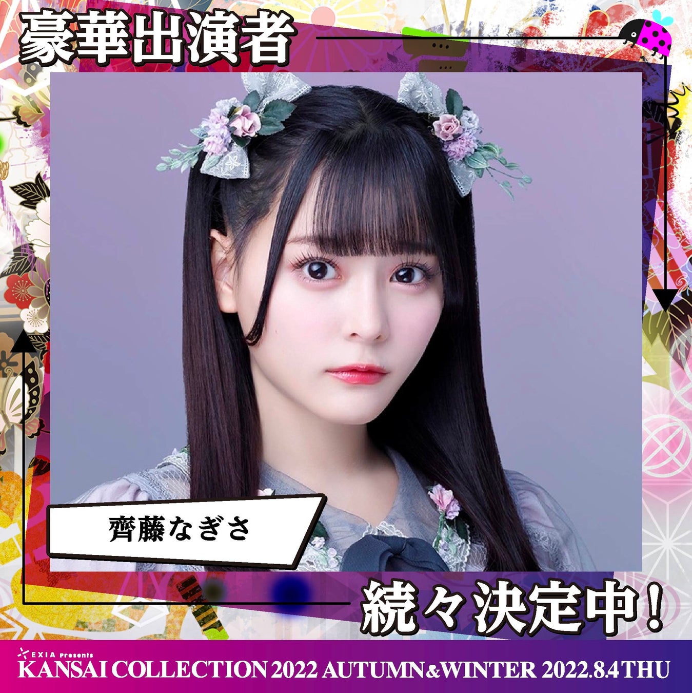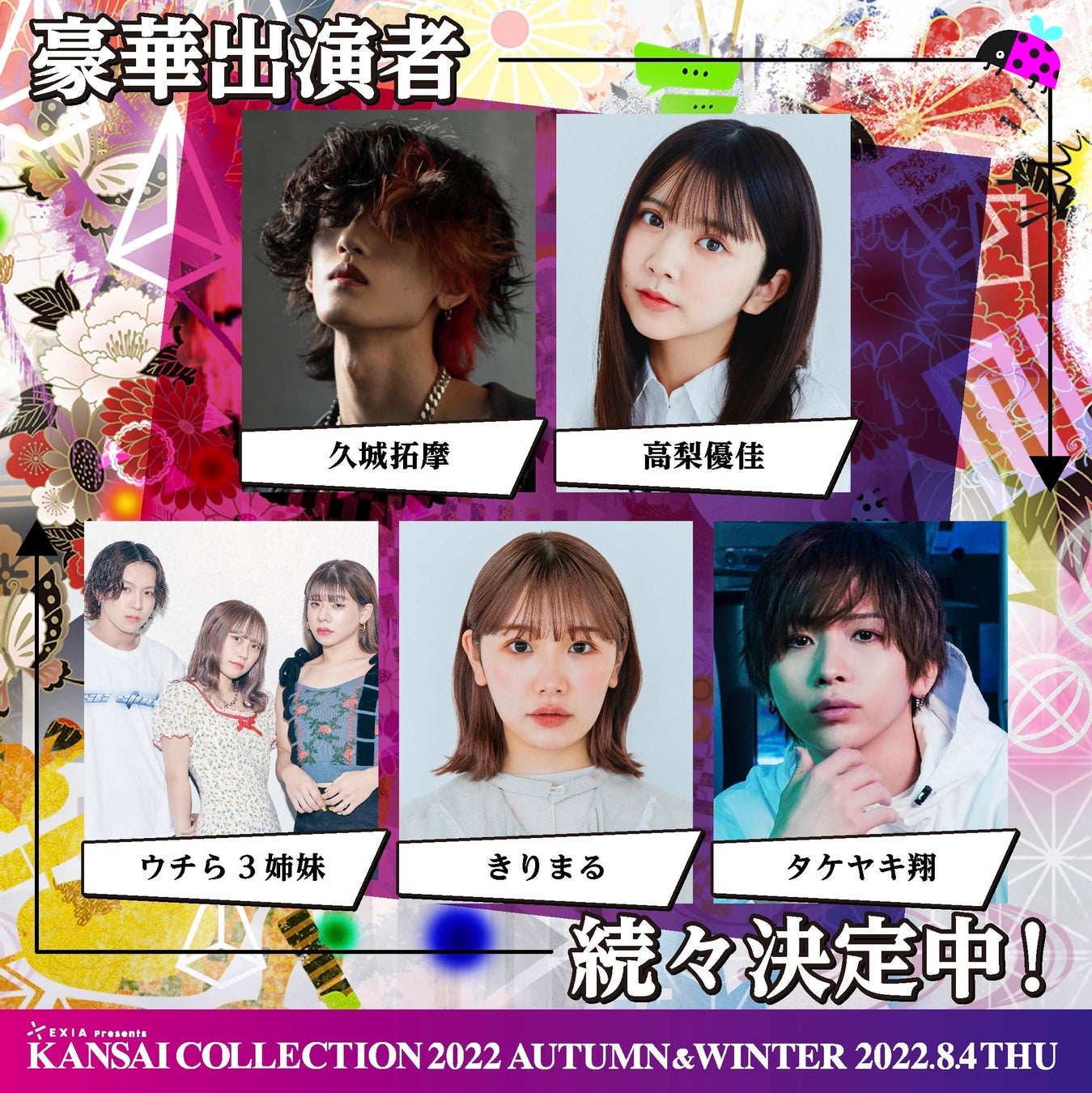 関西コレクション実行委員会(企画/制作:株式会社KANSAI COLLECTION)は、2022年8月4日(木)に、京セラドーム大阪にて『第23回 EXIA Presents KANSAI COLLECTION 2022 AUTUMN & WINTER』を開催いたします。この度、追加出演者情報が決定しましたので、お知らせいたします。