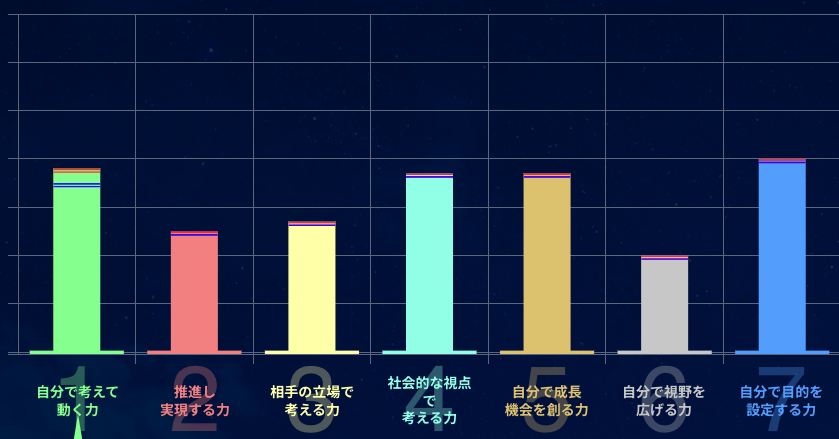 ENAGEEDでは、生徒が自分に自信を持つための「ゼロから1を生み出す力」や「相手の立場で考える力」など、これからの社会で求められる力を身につけることができます。集めたデータによって生徒の成長を可視化し、先生による指導や評価への活用までをサポートしています。