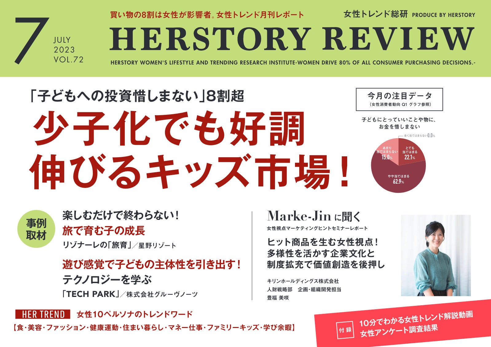 女性トレンド総研が消費の8割に影響を及ぼす女性の消費動向、市場の最新トレンドを毎月追いかけており結果の月刊レポートを展開し各企業のマーケティングに幅広く活用いただいています。本リリースの調査の詳細は7月号のHERSTORY REVIEWをぜひご覧ください。