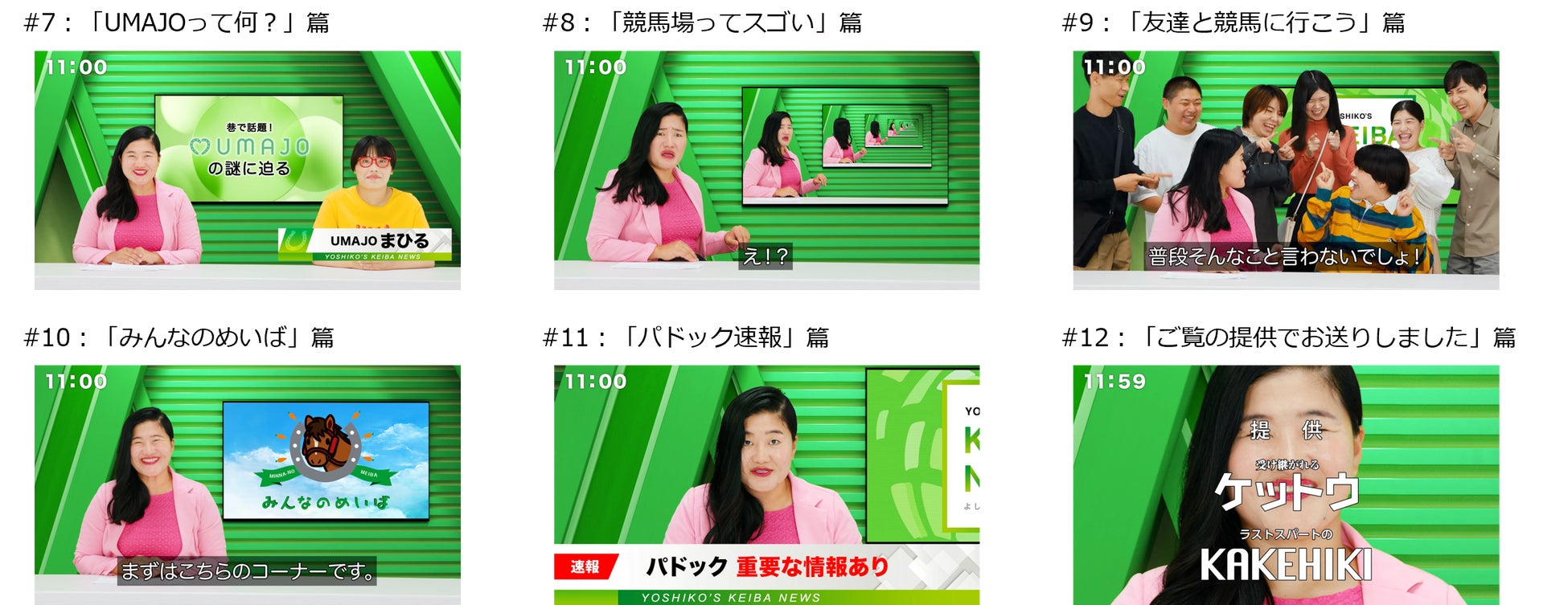 2つ目の「よしこのKEIBA NEWS」は、ニュースキャスターに扮したよしこさんが放送中に発生する様々なアクシデントを乗り越えながら、競馬の魅力を発信するニュース番組風のWEB動画シリーズです。
