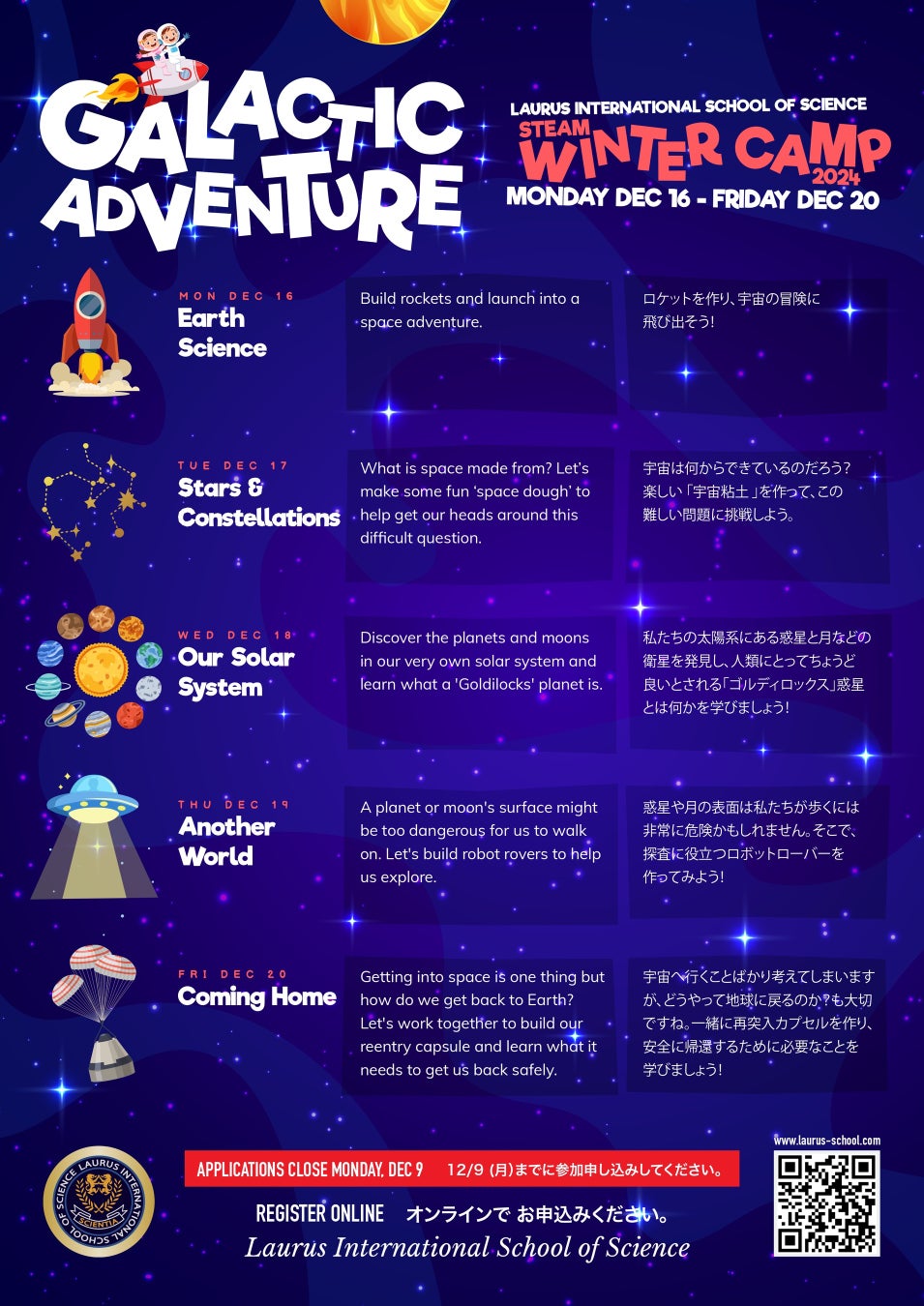 【1歳半~幼稚園生対象】STEAM ウィンターキャンプ “銀河のアドベンチャー”