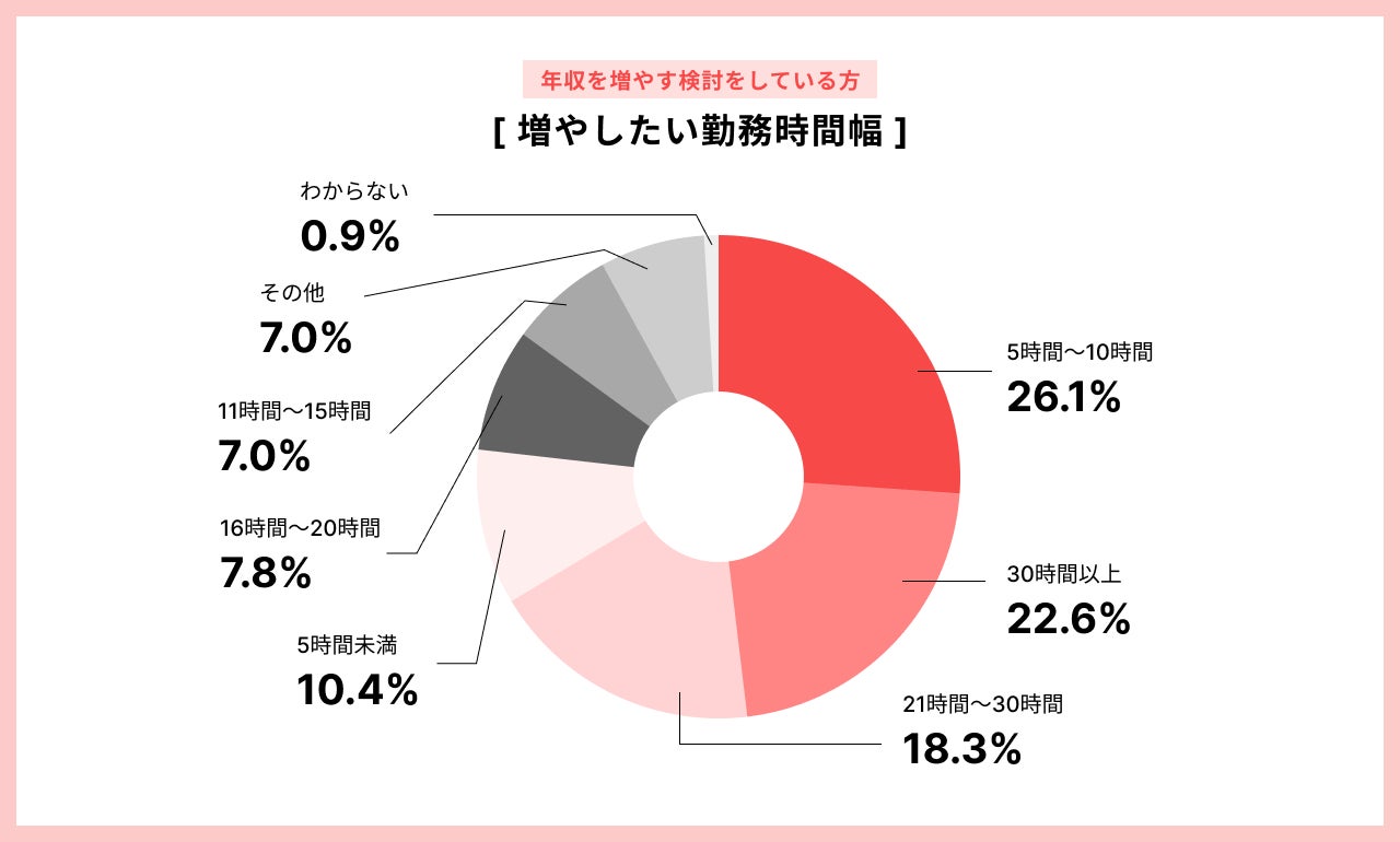 年収アップ希望者の平均勤務時間は「月約17時間」、年収は「204,816円」増加希望と判明