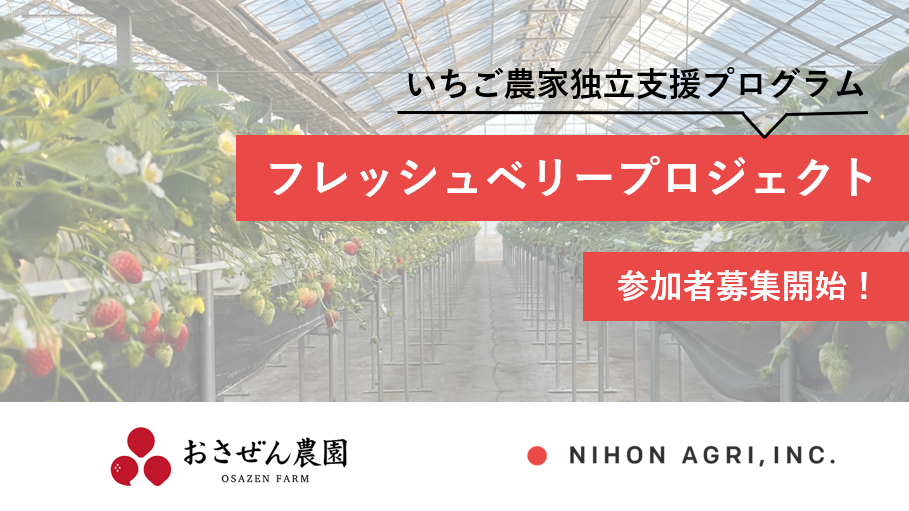 本プロジェクトは、日本農業とおさぜん農園がタッグを組み、いちご農家を目指す方を対象に独立支援を行います。参加者には、研修終了後の2025年9月に独り立ちしていただきます。本プロジェクトに密着した模様は、YouTube「ニチノウチャンネル」(https://www.youtube.com/@nihonagri/)で随時公開します。