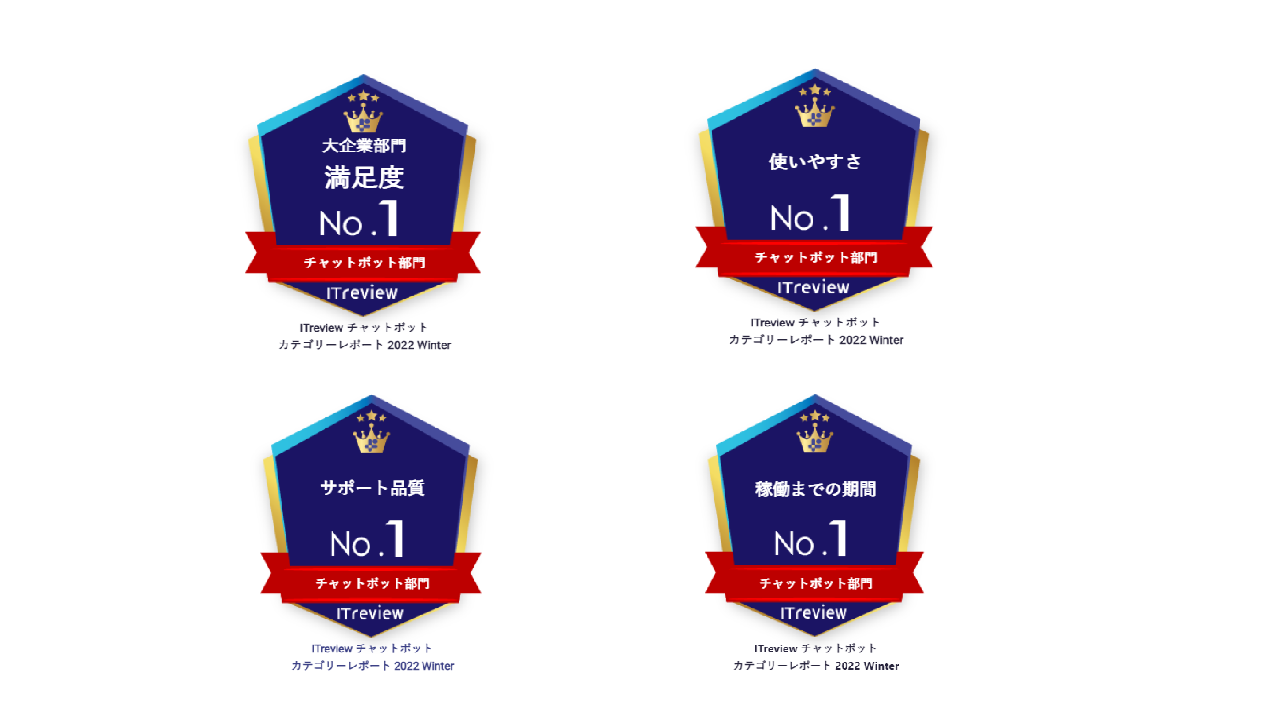 「ITreview Grid Award 2022 Winter」と同時に公開される「ITreview カテゴリーレポート」では、ITreviewに集まったレビューをもとに各製品・各機能やサービス、価格などの顧客満足度を数値化し、表示された顧客満足度がカテゴリ内で「最も高い値」だった製品に対して「No.1」として表彰・バッジが発行されています。
