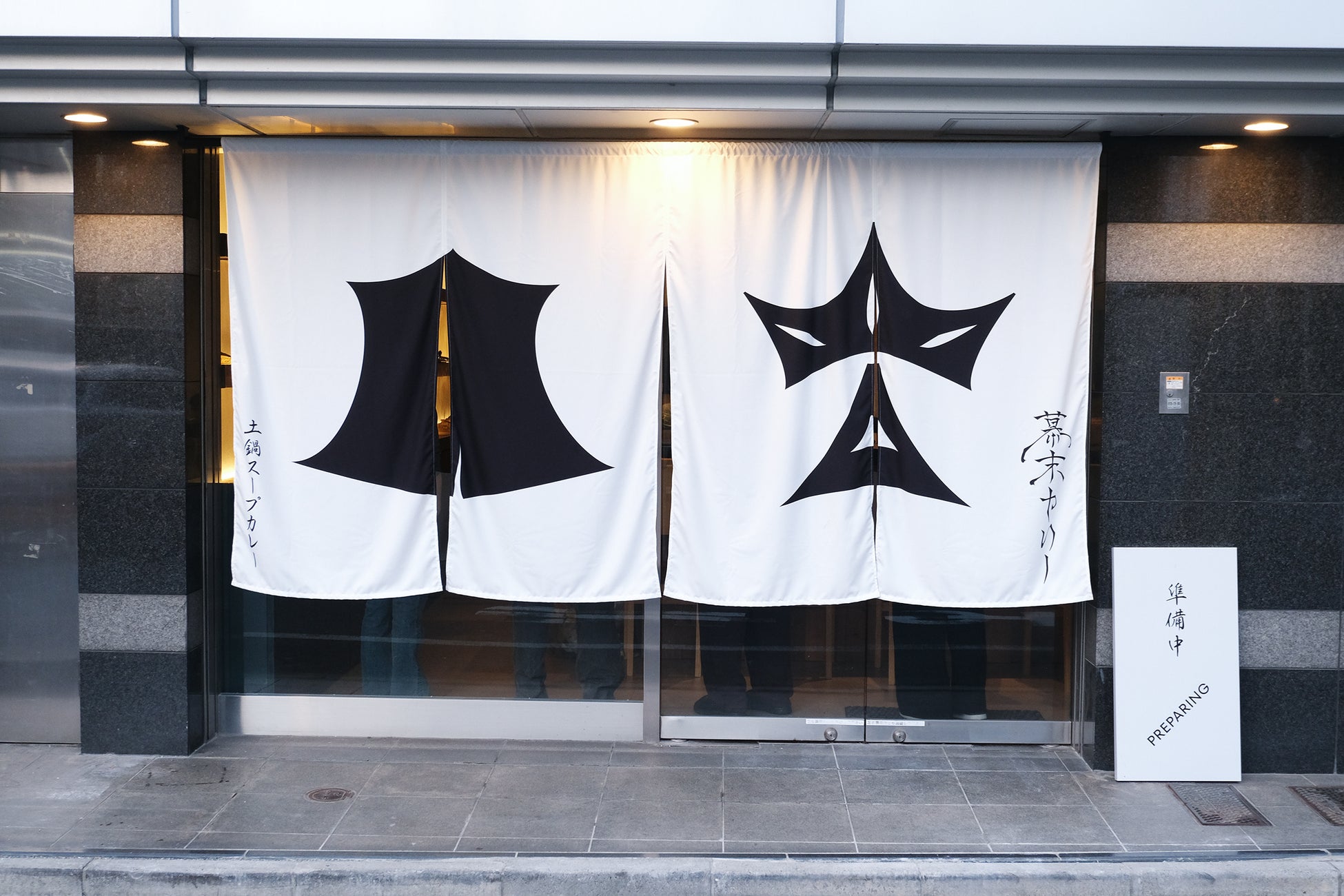 ファサードの大きな暖簾に入ったロゴのデザインは、上海出身のグラフィックデザイナー Han Gao(ハン・ガオ) 氏によるもの。