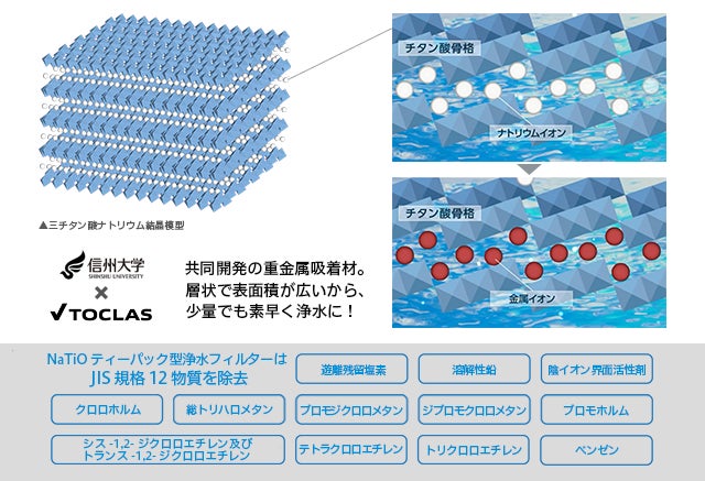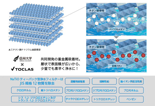 トクラスと信州大学が共同開発した浄水材料 重金属吸着材「三チタン酸ナトリウム」(特許取得済)