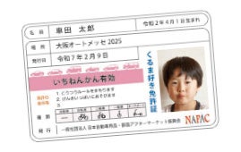 実際の運転免許証と同じサイズの自分だけの写真入りカード・NAPAC公認「クルマが大好きなお子さん向けこども免許証」が作れます。