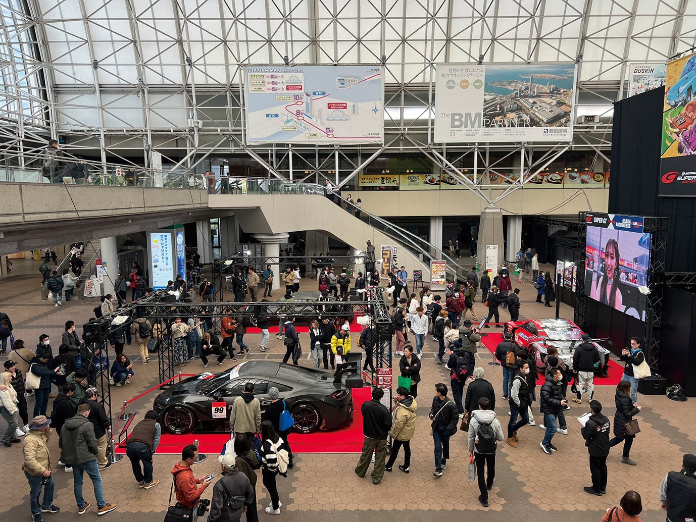 西ゲートに入ってすぐのインテックスプラザには、2024シリーズ・GT500/GT300クラスのチャンピオンマシンも登場。来場者を堂々とお迎えします。