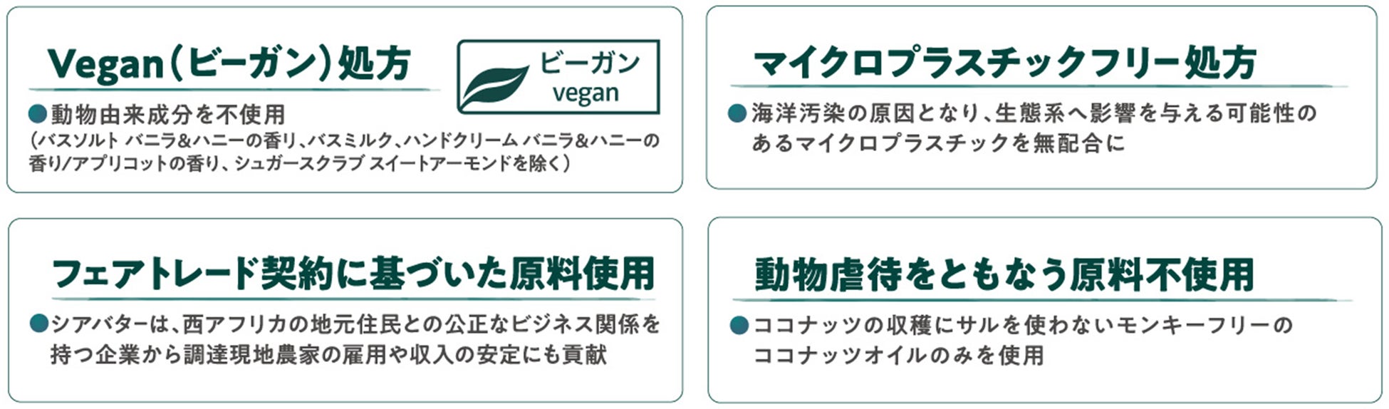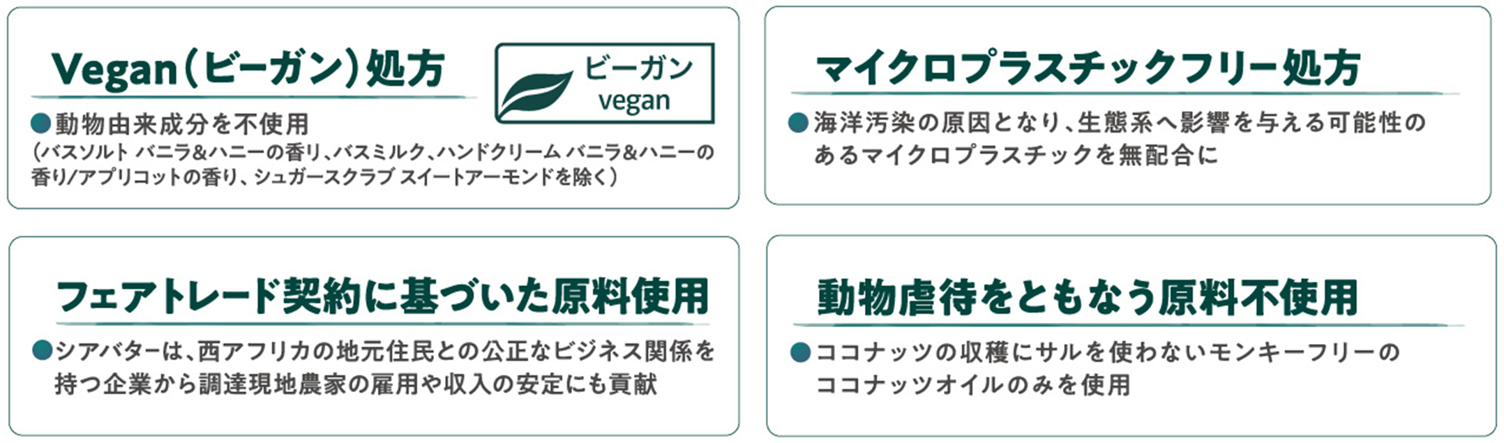 特に、生分解されず海洋汚染の一因となるマイクロプラスチックの問題の取り組みとして、すべての製品においてマイクロプラスチックフリーを実現しています。製品処方を決める際は、ドイツ最大のNGO環境団体「BUND(ドイツ環境自然保護連盟)」の定義に基づいて厳しく進めています。