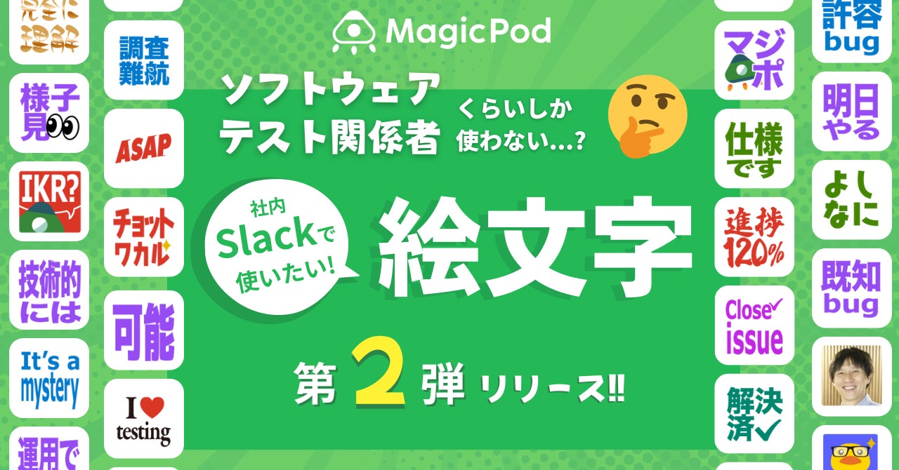 株式会社MagicPod(本社:東京都中央区、代表取締役:伊藤 望)はソフトウェアテスト関係者くらいしか使わない絵文字 第二弾を公開したことをお知らせします。