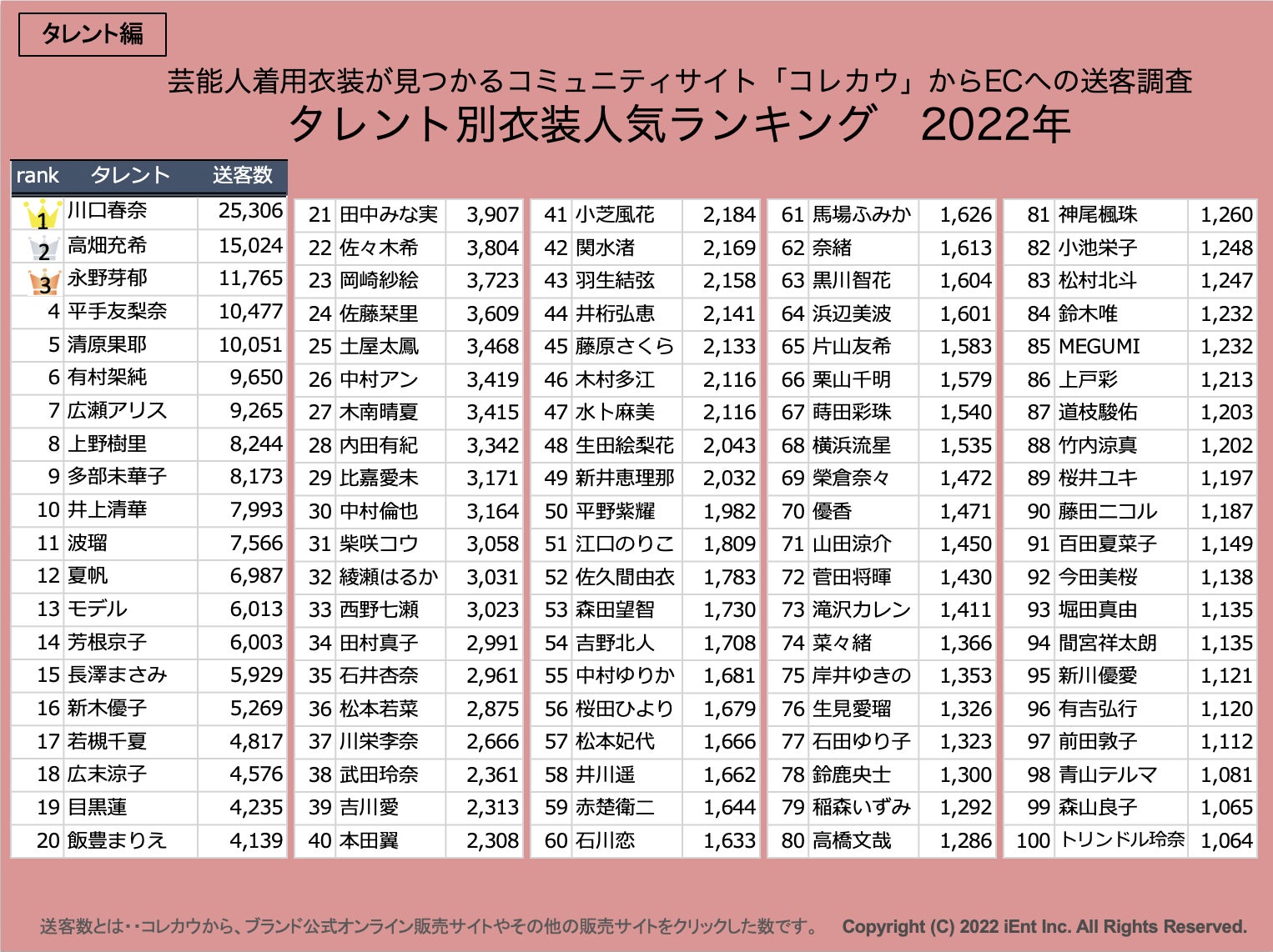 タレント別衣装人気ランキング TOP100