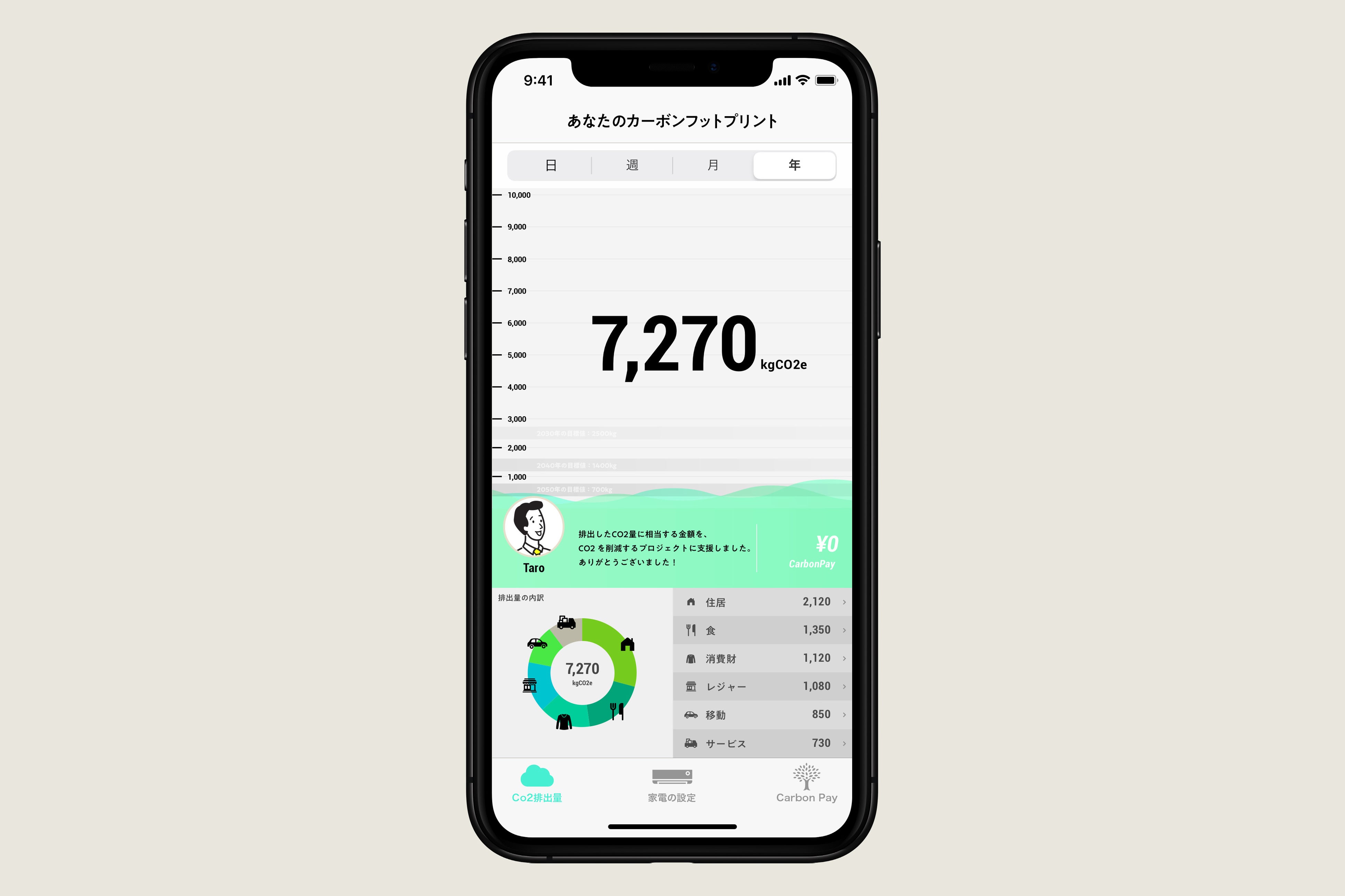 見慣れた家電に、新しい単位がある生活。そして、それをカーボンペイする生活を実感ください。