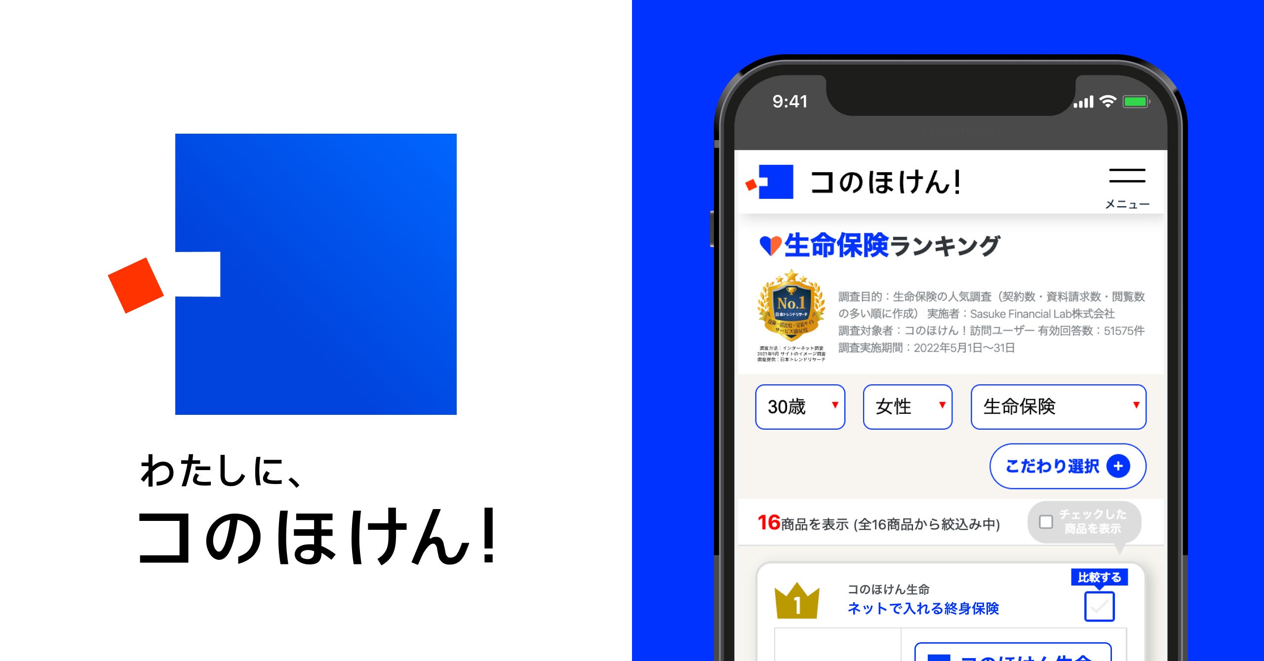 Sasuke Financial Lab 株式会社(本社:東京都千代田区、代表取締役社長:松井清隆、以下「当社」https://sasukefinlab.com/ )が運営する保険の診断・一括比較・見積もりサイト「コのほけん!」( https://konohoken.com/ )の「人気の生命保険ランキング」において保険商品についてのお客さまの口コミを掲載開始したことをお知らせいたします。
