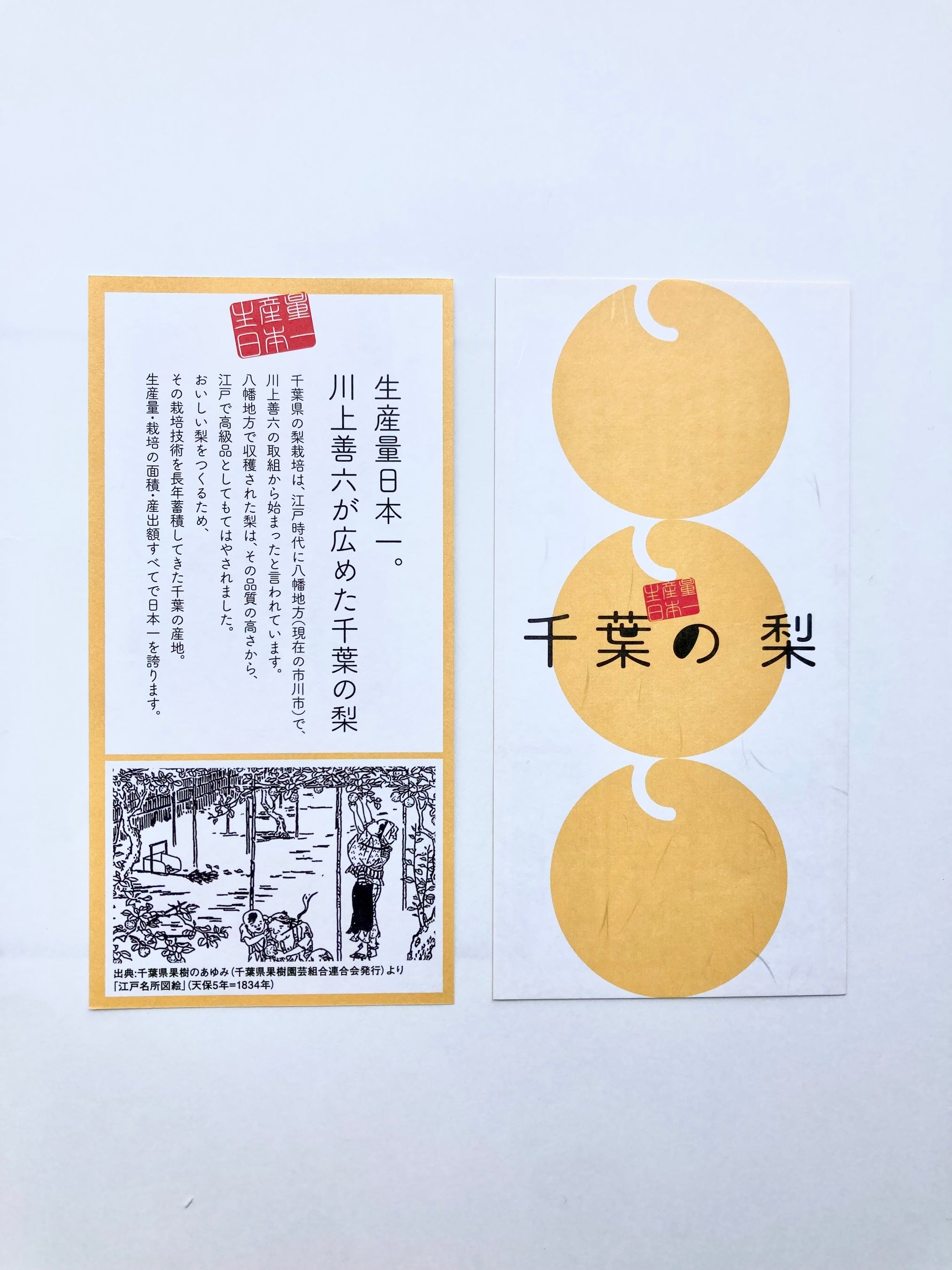 今回の公募によって採用されたデザインは、「千葉の梨」プロモーションに際し、贈答箱をはじめ各種販促物に幅広く活用していく予定です。