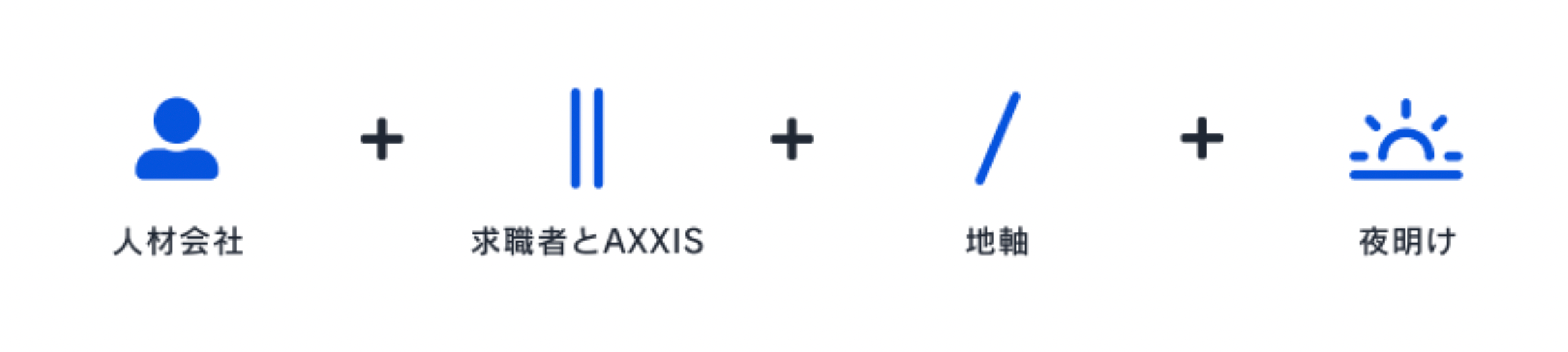 AXXISはテクノロジーを駆使し、「人間らしい働き」を実現するキャリア支援を行う第一人者として、求職者の軸を見つけ、あなたのキャリアをサポートし、新しいスタンダードを世の中に提示することで、自分に対して、未来に対して希望を持てる存在であり続けたいという想いを込めました。