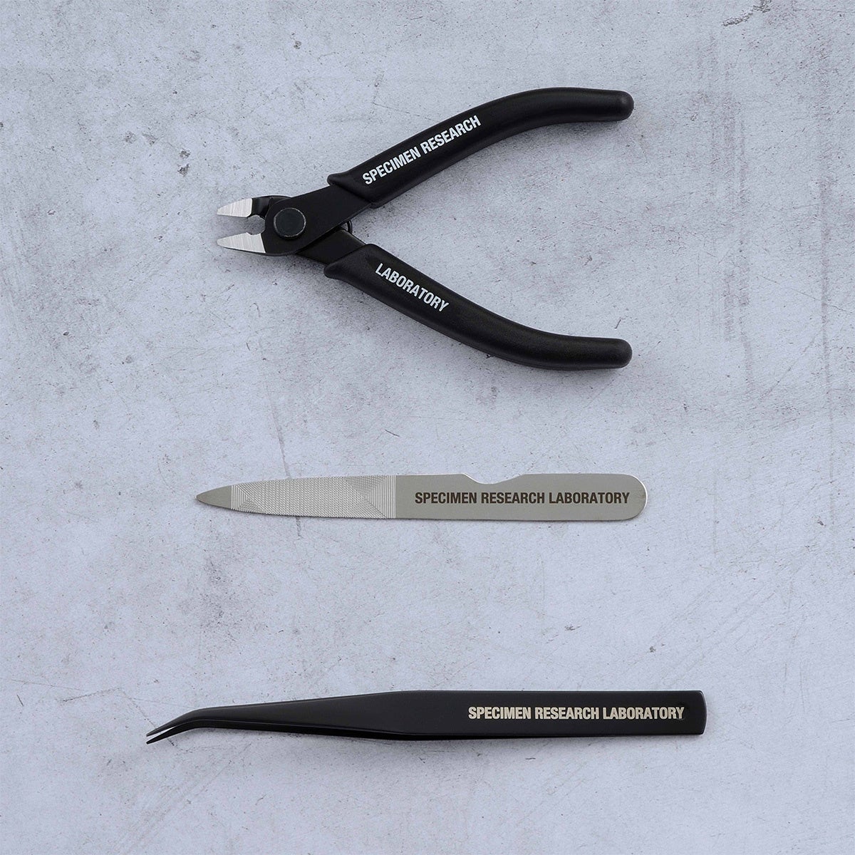 「SRL X BANDAI SPIRITS . BONSAI MODEL KIT(前述/別売)」製作に最適なプラモデル用ツール3種をセットにしたアイテム。保管に便利なケース付き。