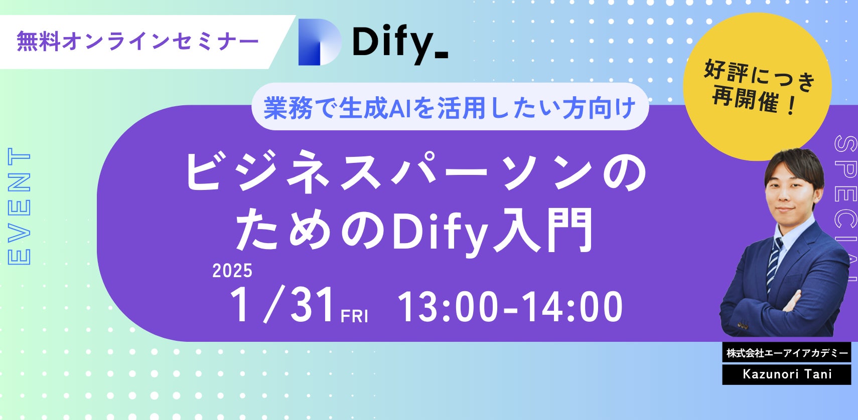 【好評につき第2弾!】業務効率化のヒントを無料で!「ビジネスパーソンのためのDify入門」ウェビナー参加受付開始のお知らせ