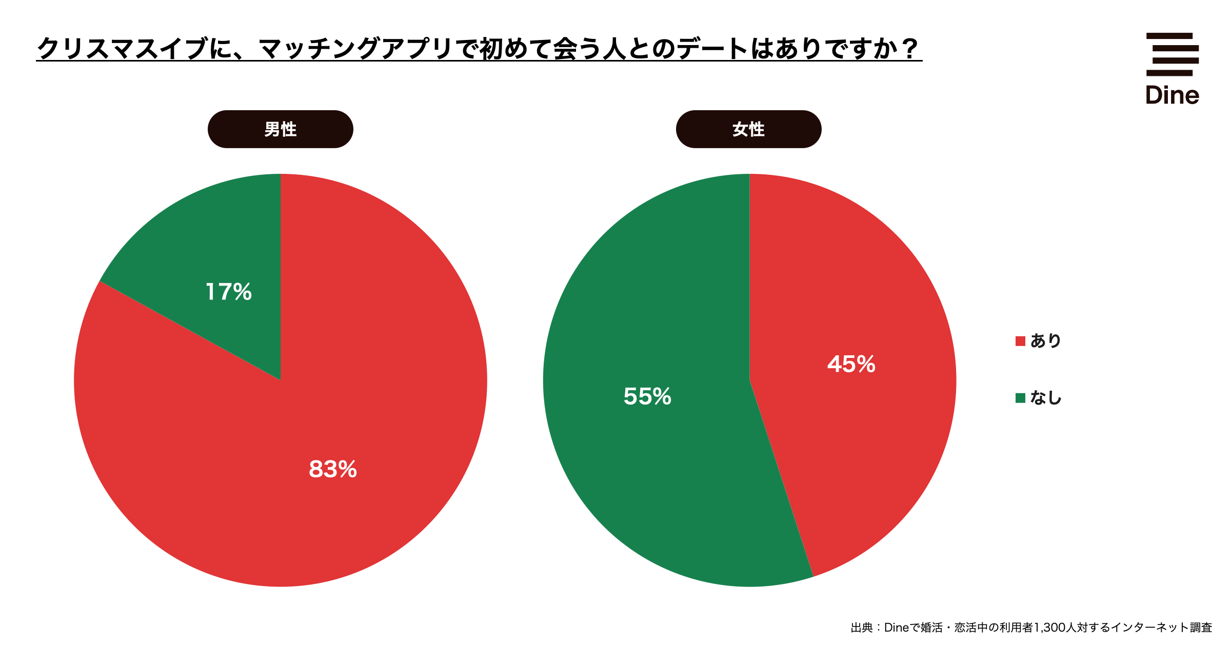 ●クリスマスイブに、マッチングアプリデート「あり派」は男性83%、女性45%