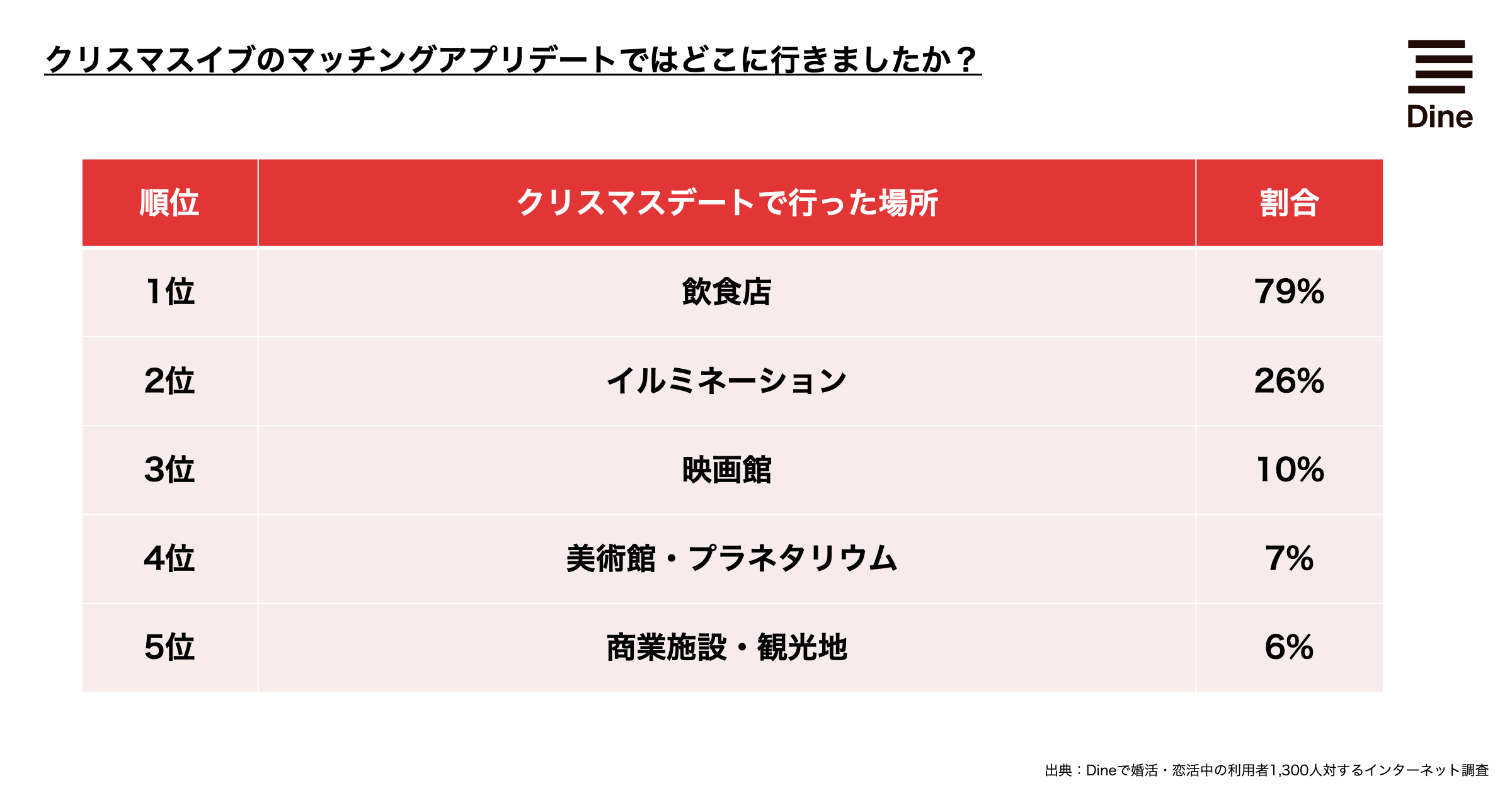 6年ぶりの休日クリスマスに向けて、マッチングアプリ「Dine(ダイン)」がクリスマスデートに関する調査を実施